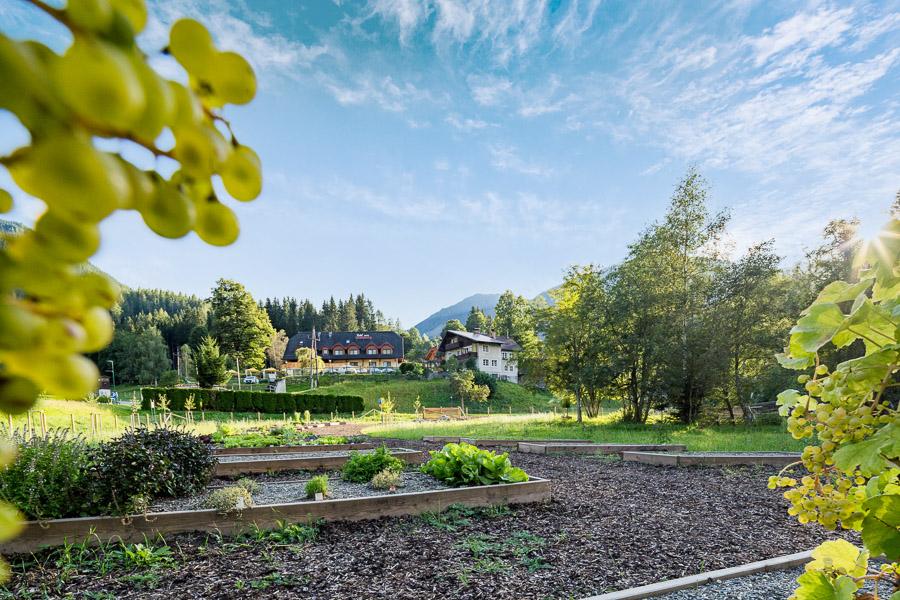 Ein eigener großer Biogarten und Fischteich - wird gepflegt von unserem fleissigen Team .