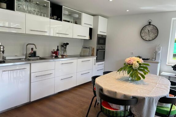 Die Innenausstattung lädt zum Verweilen und Genießen ein: Ein helles Wohnzimmer mit bequemer Sitzecke, Esstisch, TV und WLAN für gemütliche Abende. Eine gut ausgestattete Küche mit Kaffeemaschine, Geschirrspüler, Mikrowelle und Ofen erfüllt alle Wünsche für Selbstversorger. Die Wohnung verfügt zudem über zwei Schlafzimmer mit Doppelbetten und ein weiteres Schlafzimmer mit einem Etagenbett. Abgerundet wird das Raumangebot durch ein Badezimmer mit Badewanne und WC sowie ein weiteres Badezimmer mit Dusche und WC.