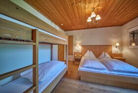 Willkommen in der Pension Enzian Vierbettzimmer 1, Deinem perfekten Rückzugsort für einen erholsamen Aufenthalt für 4 Personen. Der 20m² Raum bietet nebst bequemen Doppelbett und Stockbett ein Bad mit Dusche + Toilette. Vom Balkon besteht ein herrlicher Bergblick. Der Lift befindet sich direkt neben der Unterkunft. Morgens erwartet dich ein herrliches, reichhaltiges Frühstück vom Buffet. Außerdem kannst Du im hauseigenen Restaurant ab 16:00 Uhr köstlich speisen oder den Tag in der Holzsauna ausklingen lassen.