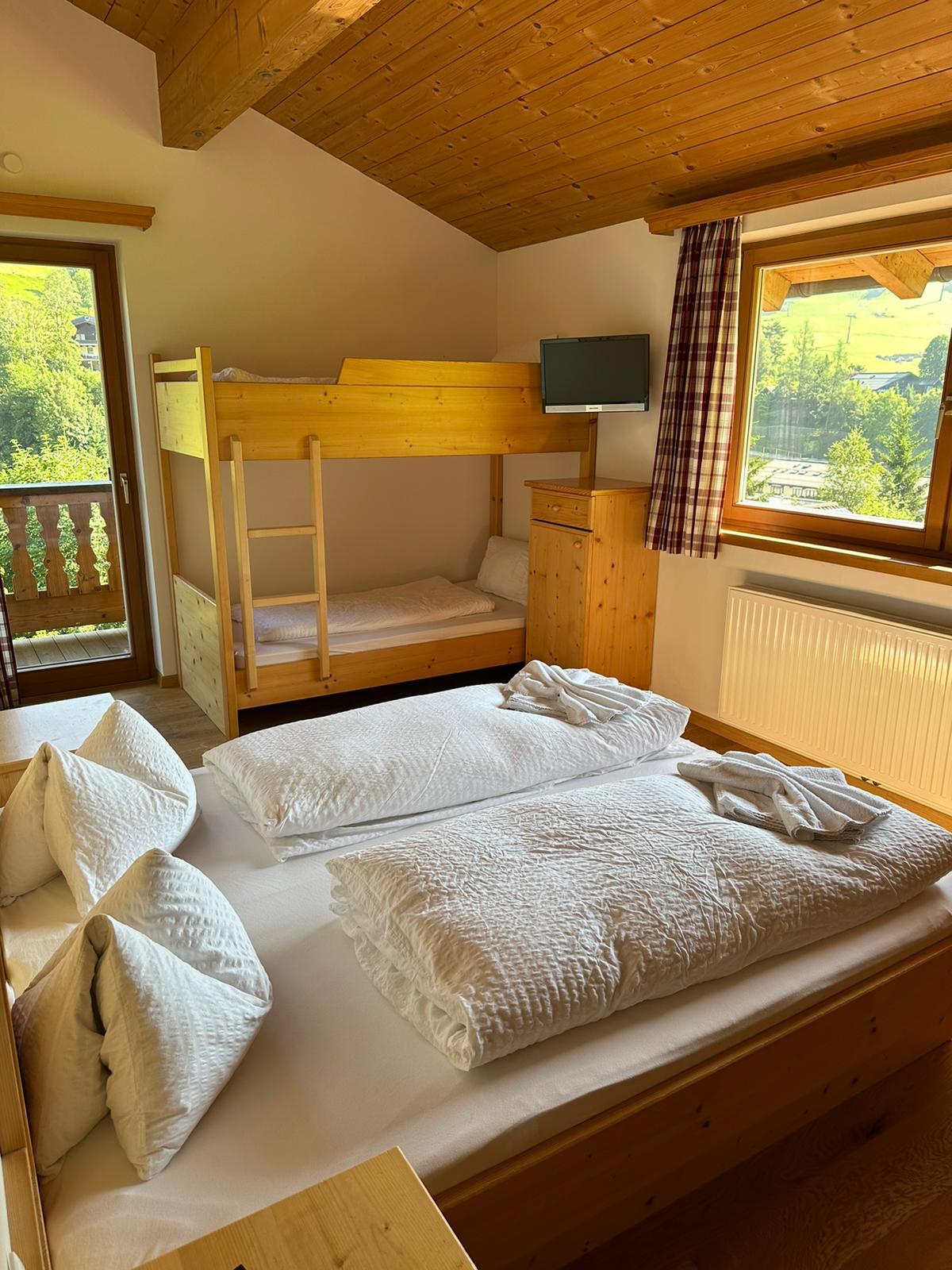 Unsere Frühstückspension offeriert insgesamt 10 Doppelzimmer, 2 Einzelzimmer, 1 Vierbettzimmer und 1 Dreibettzimmer. Alle Räumlichkeiten sind vollständig renoviert und mit Bad und WC ausgestattet. Die Balkone sind nach Süden oder Norden gerichtet und bieten einen herrlichen Ausblick auf Schattberg oder Bernkogel sowie die umliegenden Almwiesen. Durch ruhige Lage ist ein erholsamer Schlaf garantiert. Das komfortable Urlaubspaket wird durch die Holzsauna und kostenloses WLAN im jedem Raum abgerundet.