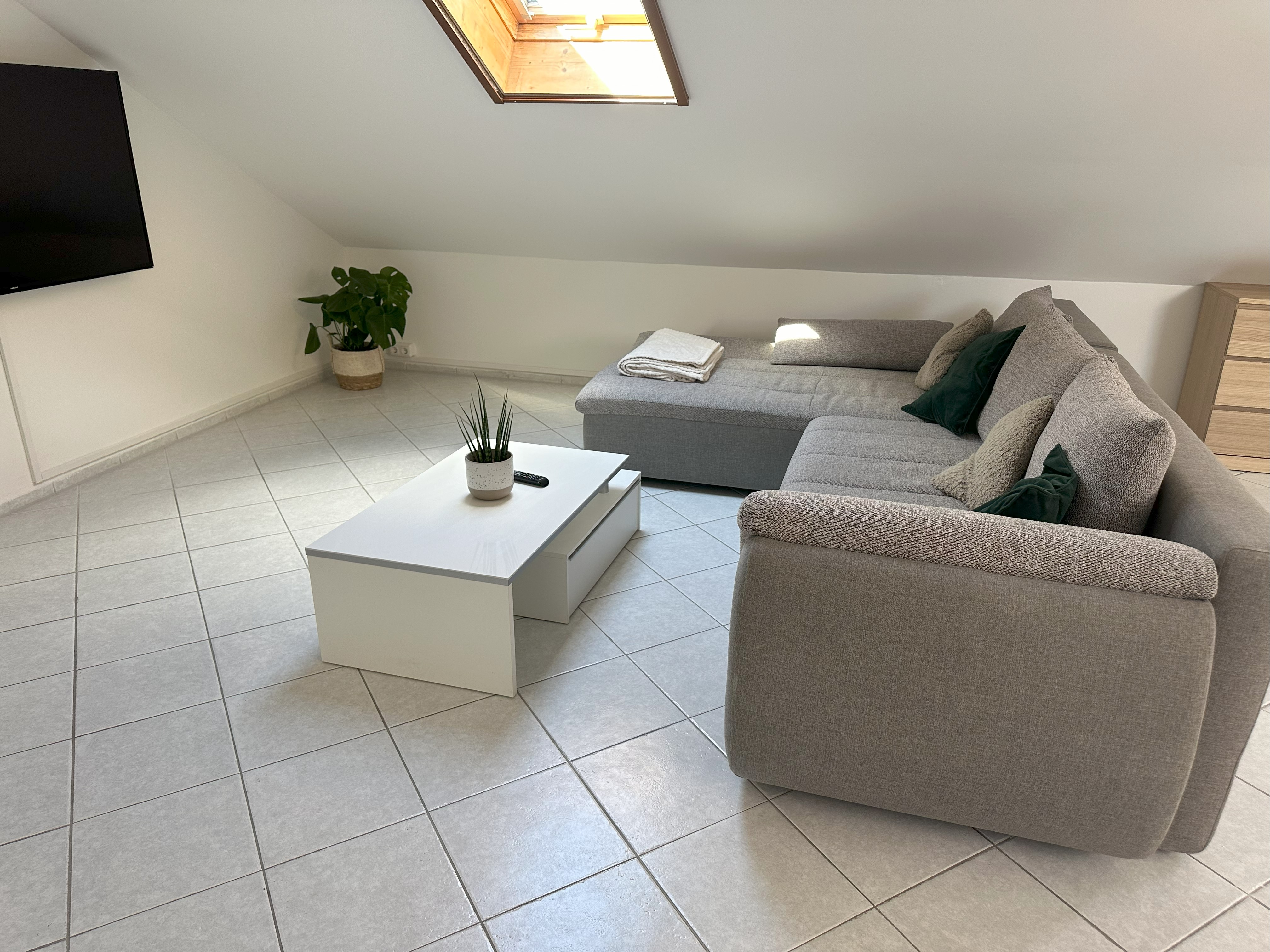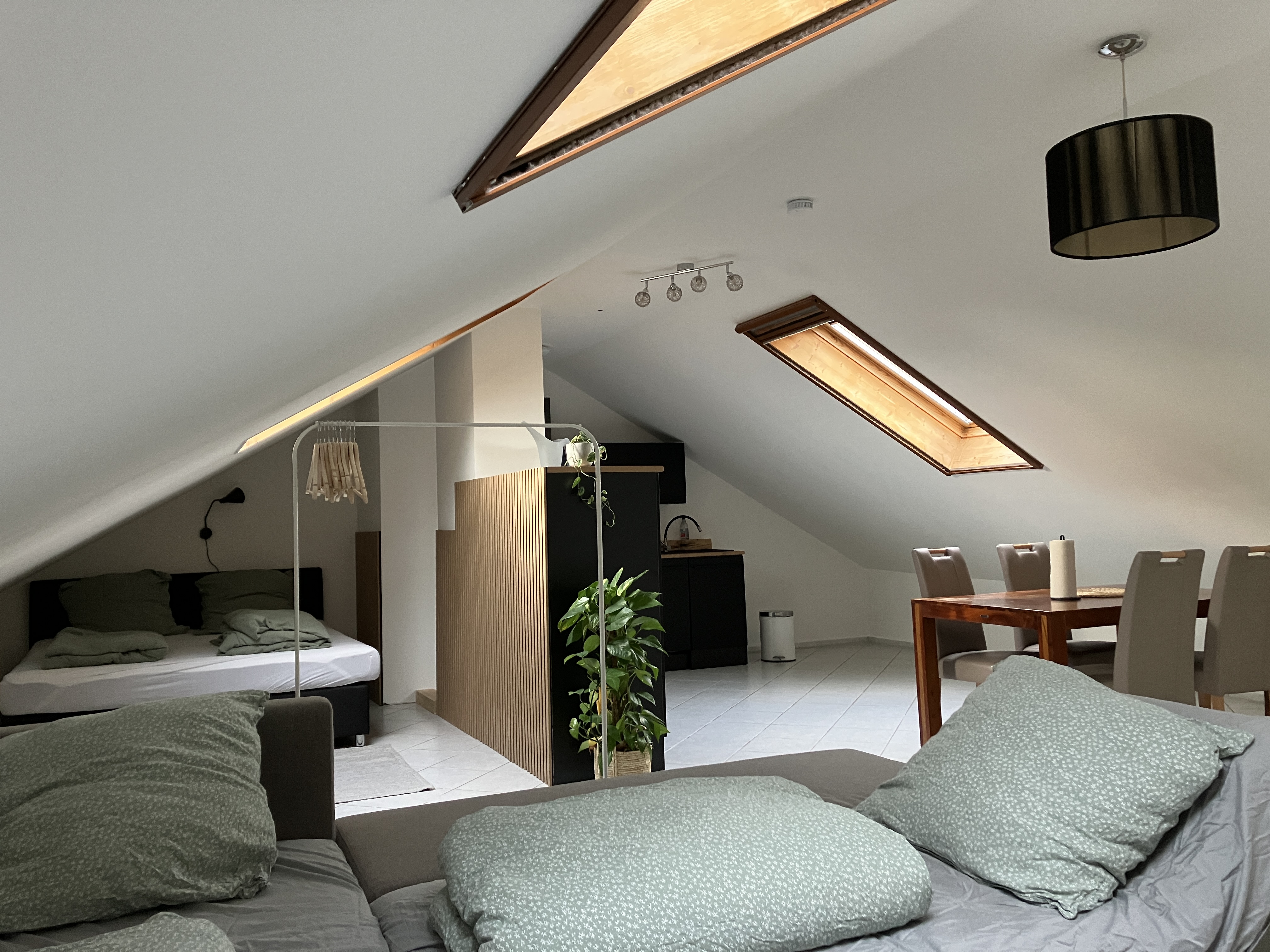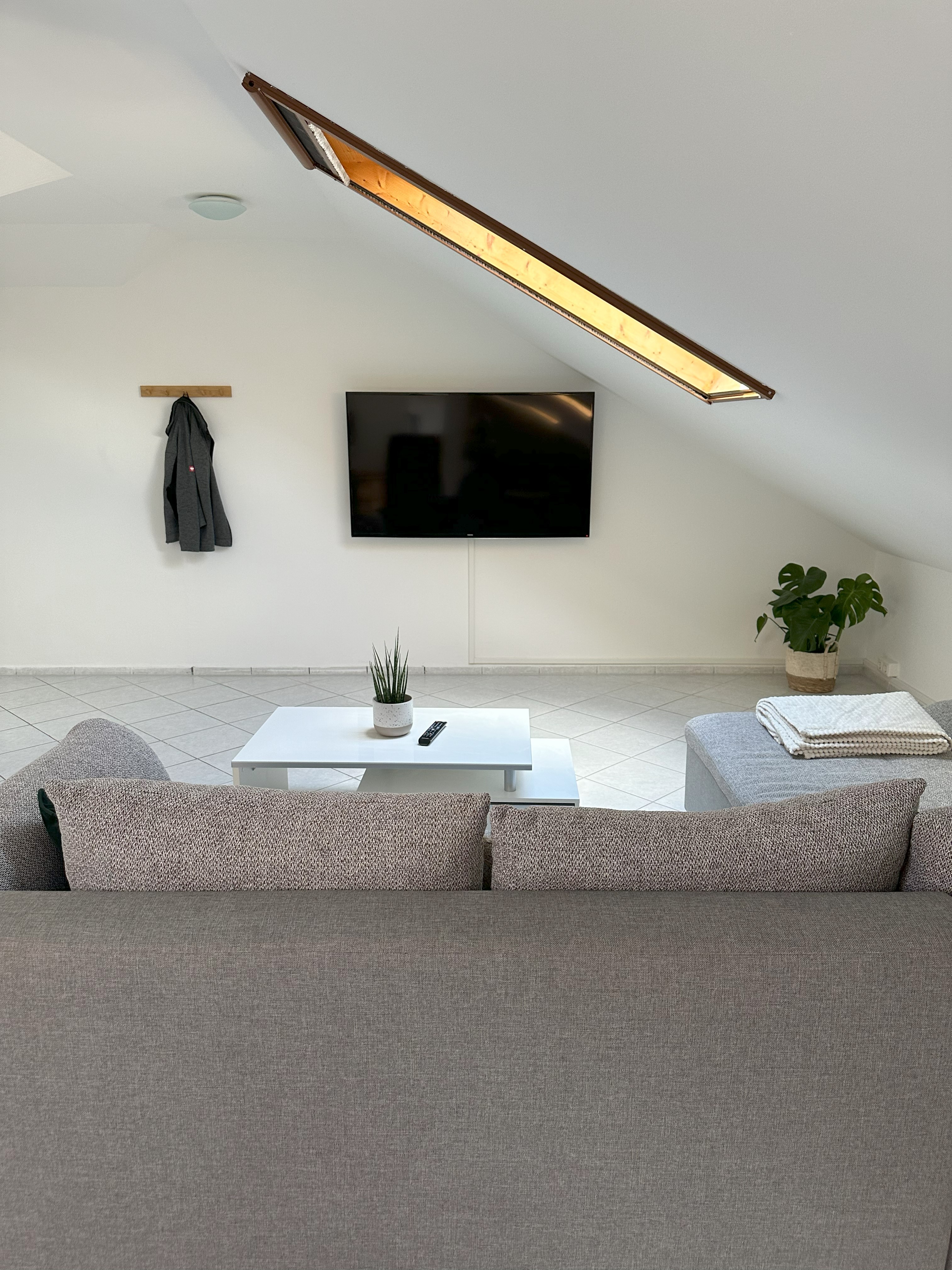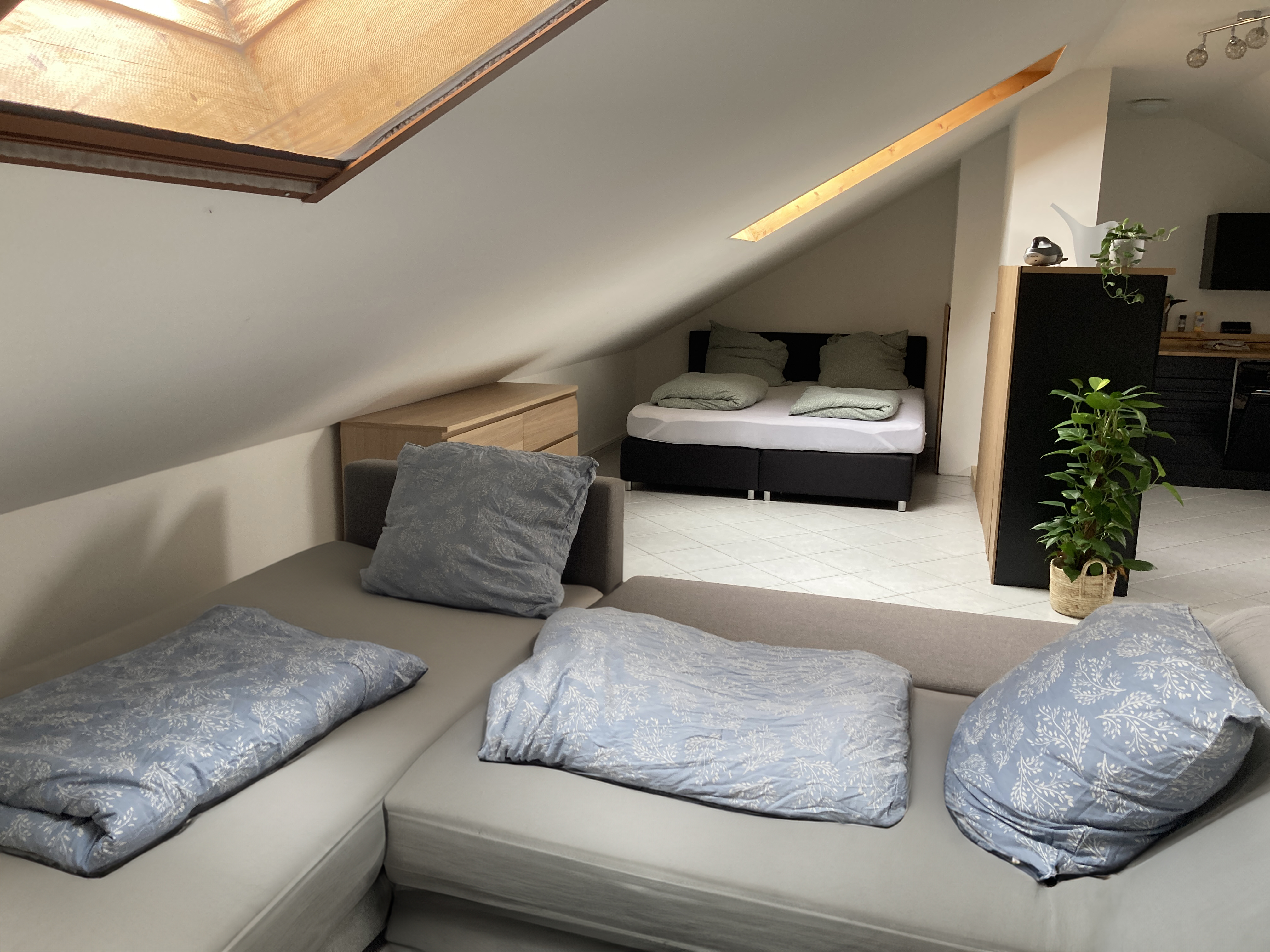 Ein großes Doppelbett (180 cm) und eine Couch, welche als Schlafcouch dienen kann, bieten zusammen Platz für bis zu 5 Personen.