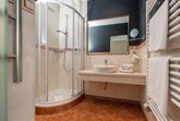 Badezimmer mit Dusche/WC, Haarföhn, Schminkspiegel & Handtuchtrockner
