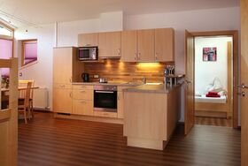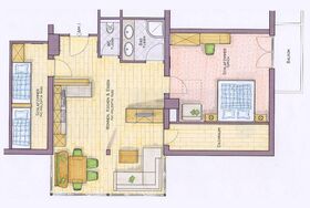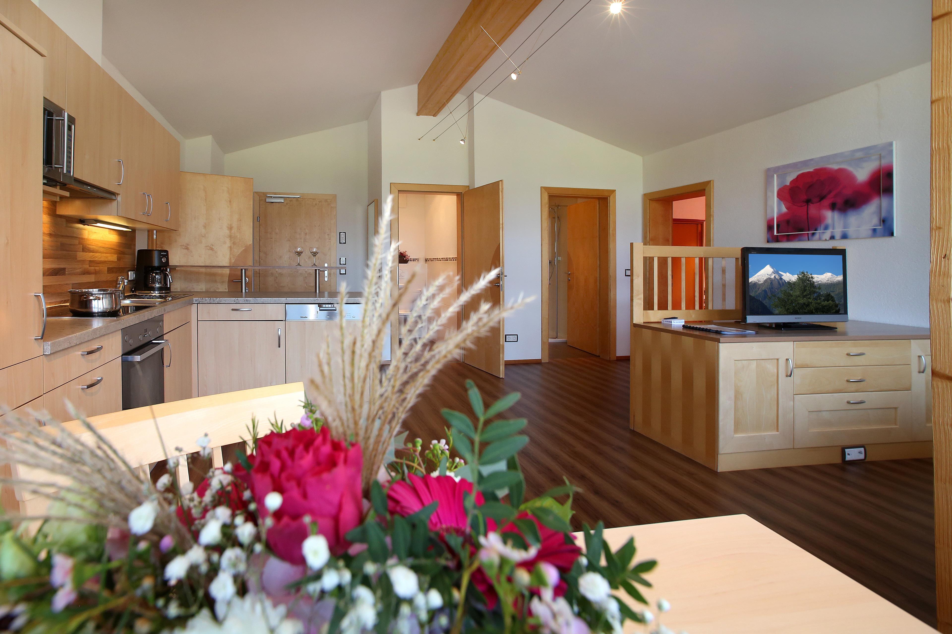 Voll ausgestattete Wohnküche mit Kühlschrank, Zeranfeld, Backofen, Kaffeemaschine, Microwelle; Badezimmer mit Dusche (inkl. Fön), WC separat, Balkon, 3 TV, Mikrowelle, Wasserkocher, E-Herd und Geschirrspüler. Bett-, Tischwäsche und Handtücher sind im Preis inbegriffen