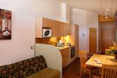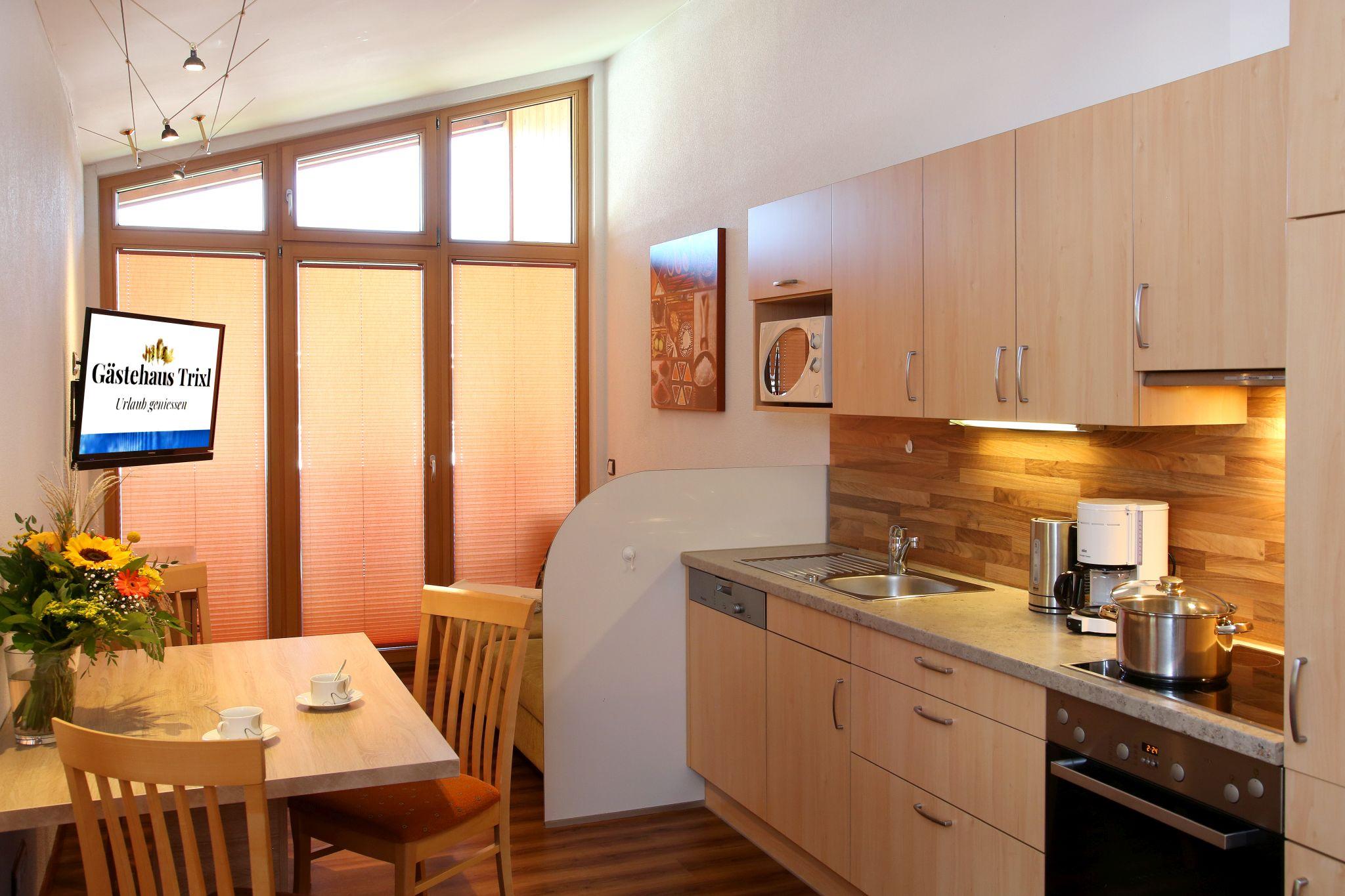 Voll ausgestattete Wohnküche mit Kühlschrank und Gefrierfach, Ceranfeld, Kaffeemaschine, Microwelle; Badezimmer mit Dusche (inkl. Fön), WC, Balkon, 2 TV, Wasserkocher, Backrohr, E-Herd und Geschirrspüler. Bett-, Tischwäsche und Handtücher sind im Preis inbegriffen