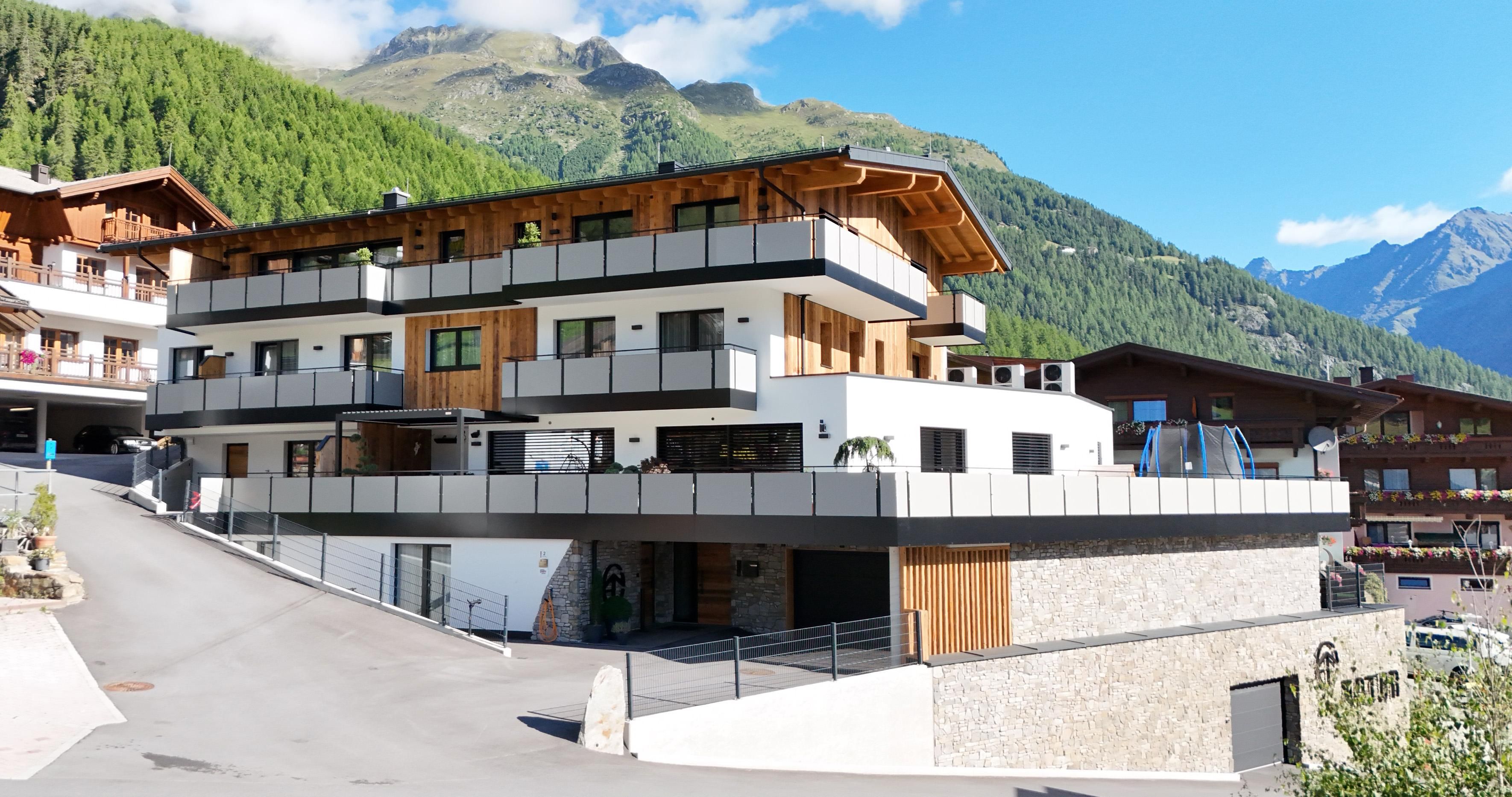 Ihr Zuhause in Sölden, direkt an der Skipiste und der Bikeline. Unser modernes Apartmenthaus verbindet durch charakteristischen Stein und Altholz, zeitlosen Stil mit traditionellen Elementen aus der Natur des Ötztals. Unsere 3 exklusiven Apartments bieten höchsten Wohnkomfort mit Ausblick auf die Ötztaler Bergwelt und persönliche Atmosphäre.