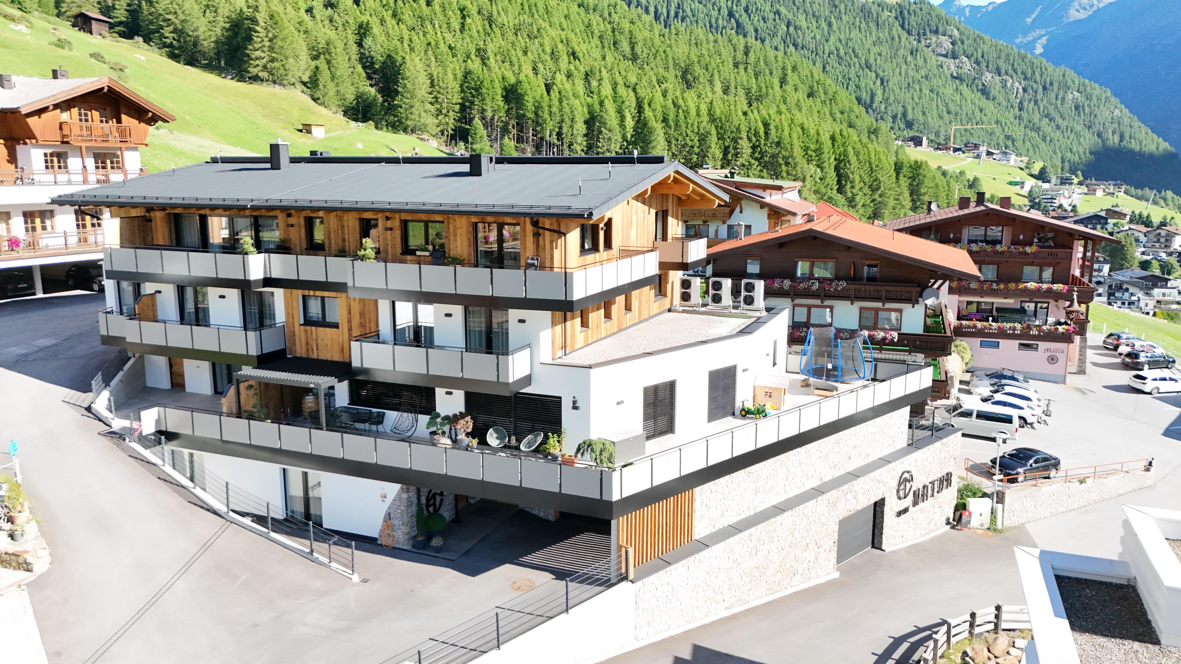 Ihr Zuhause in Sölden, direkt an der Skipiste und der Bikeline. Unser modernes Apartmenthaus verbindet durch charakteristischen Stein und Altholz, zeitlosen Stil mit traditionellen Elementen aus der Natur des Ötztals. Unsere 3 exklusiven Apartments bieten höchsten Wohnkomfort mit Ausblick auf die Ötztaler Bergwelt und persönliche Atmosphäre.