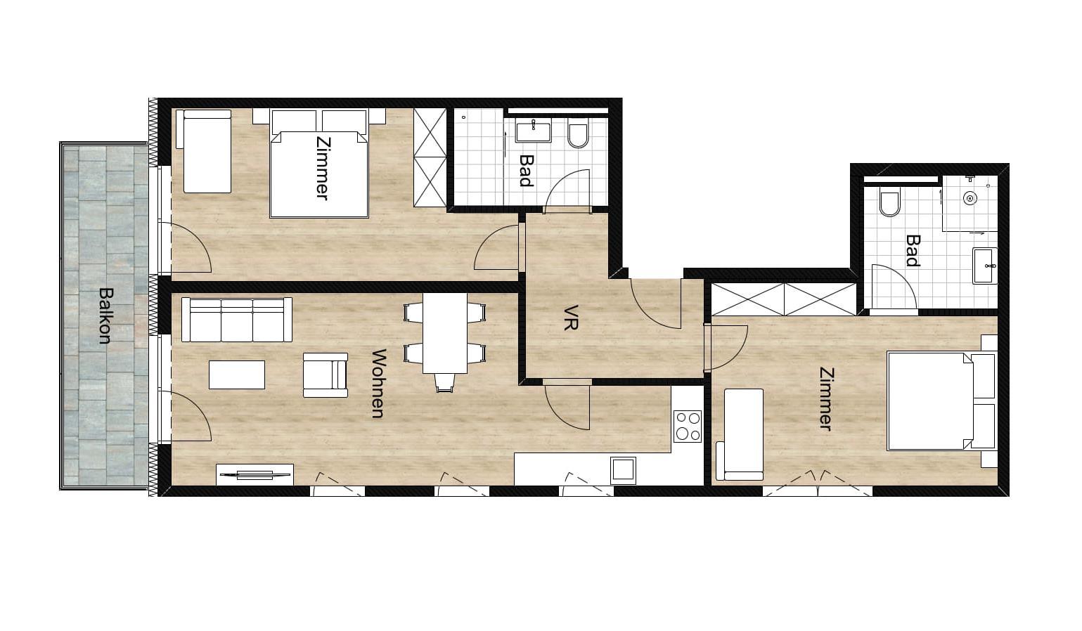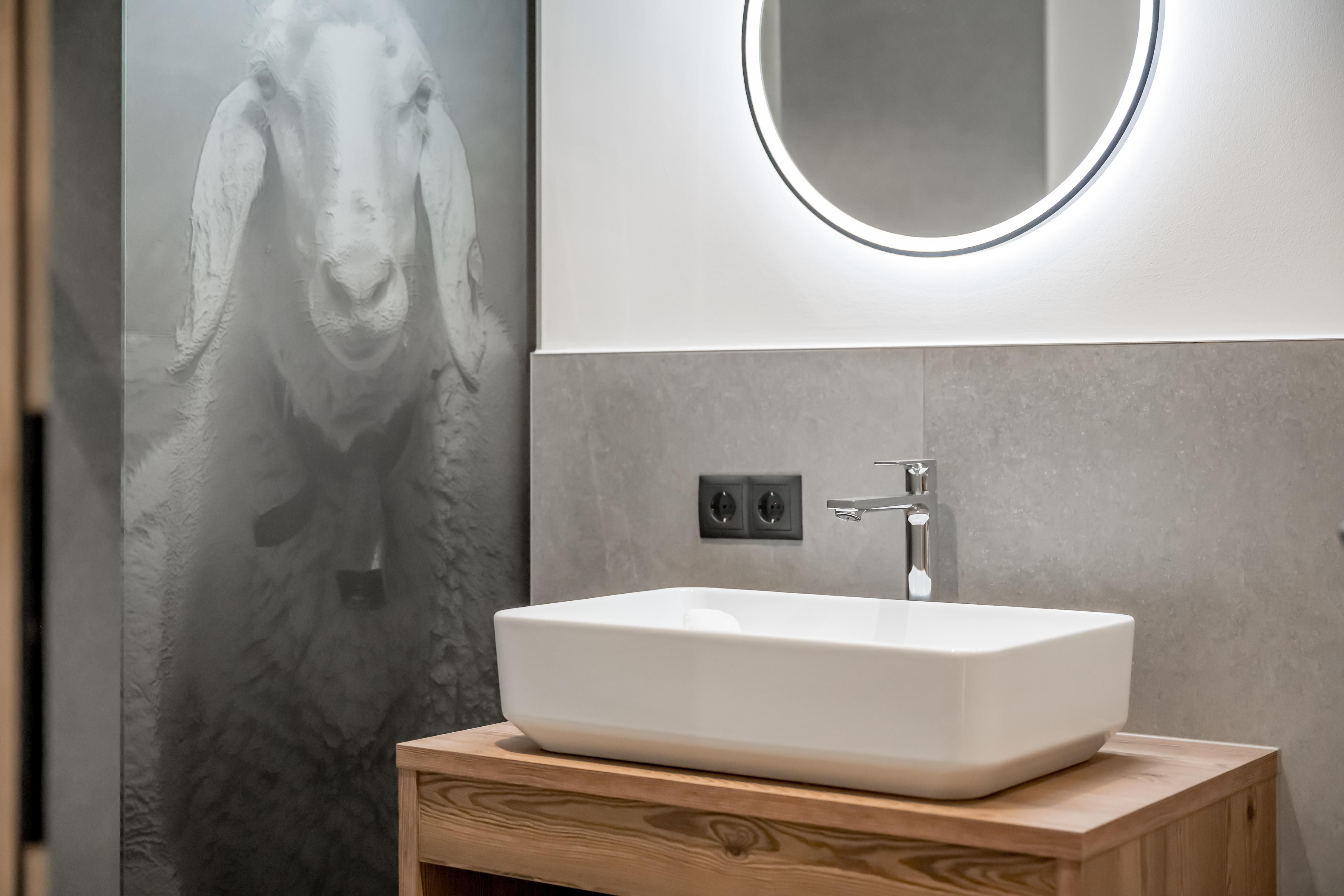 Apart Gamsbock im 1. Obergeschoss mit ca. 70 m²: 1 Doppelzimmer mit Boxspringbetten, 1 Dreibettzimmer mit Doppelbett (Boxspringbett) und einem vollwertigem Einzelbett; 1 Wohnschlafraum mit Ausziehcouch für 2 weitere Personen, grundausstattung Kochutensilien, Mikrogrill, Kühlschrank mit Gefrierfach, Wasserkocher, Toaster, Soda Stream, Kaffeemaschine/ Nespresso Maschine (Kapseln bei uns erhältlich), Spülmaschine inkl. Tabs, 4-Platten Kochfeld uvm; 2 Badezimmer mit ebenerdiger Dusche und WC; Balkon; 2 Stellplätze in unserer Tiefgarage