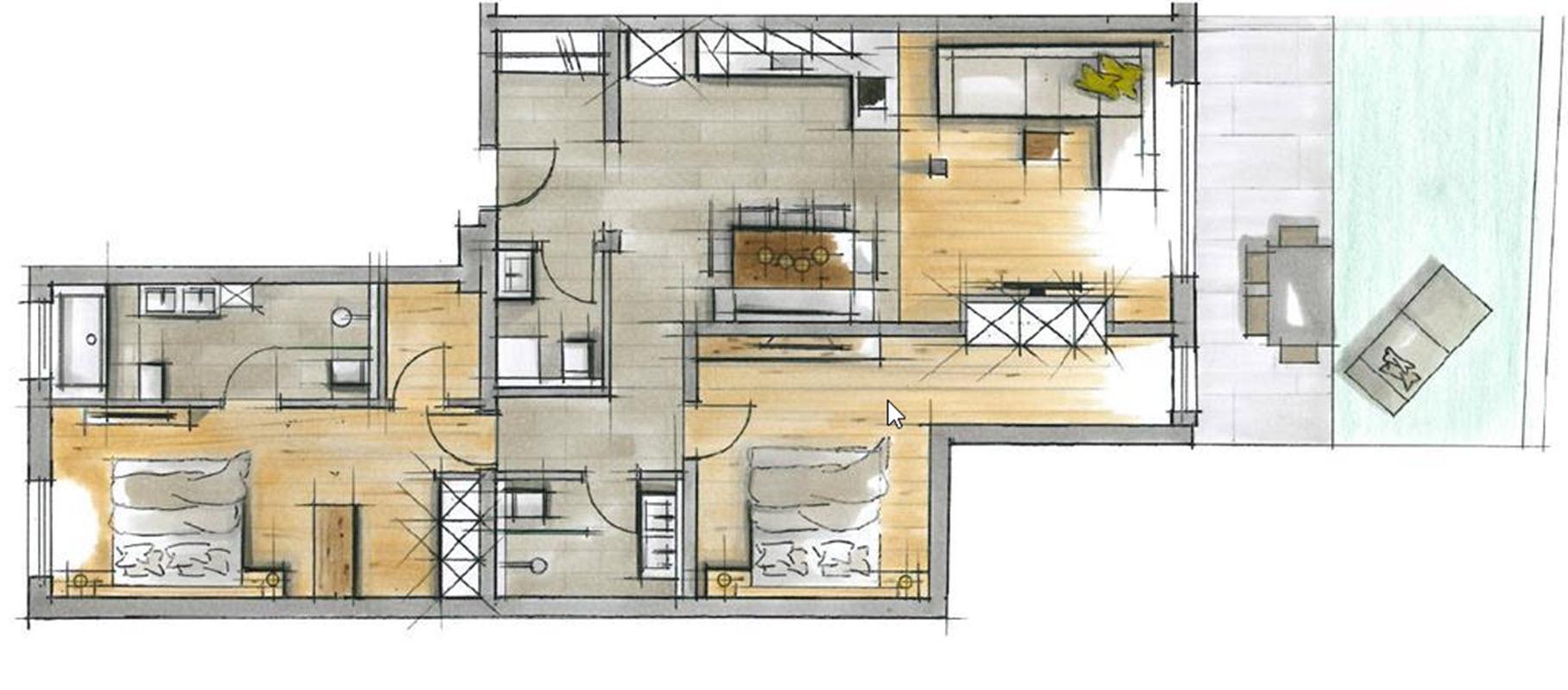 2 Schlafzimmer * 2 Badezimmer Dusche/Badewanne/WC * 2-6 Personen * Erdgeschoß * 110 m2 * Terrasse