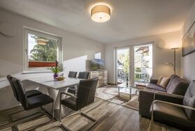 Moderne 3-Zimmer-Wohnung mit Balkon im Erdgeschoss für 2 bis maximal 8 Personen. Der große Wohnraum verfügt über eine moderne Einbauküche (u.a. mit Spülmaschine, Ess- und Kochgeschirr), Esstisch und eine hochwertige Schlafcouch (Liegefläche 170x200cm, mit Lattenrost). 2 Schlafzimmer mit je einem Doppelbett und nach Bedarf einem weiteren Einzelbett. Das Bad ist mit Badewanne, Dusche und WC ausgestattet. Balkon mit Blick zum Wilden Kaiser! 3 Satellitenfernseher und kostenloses W-LAN.