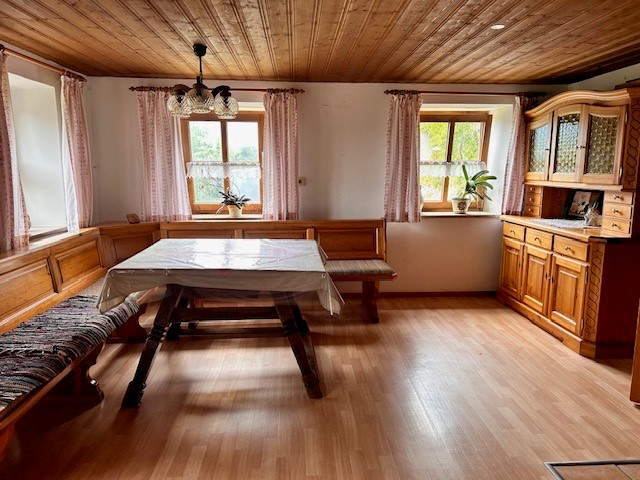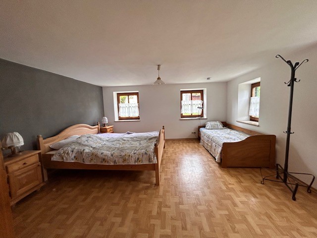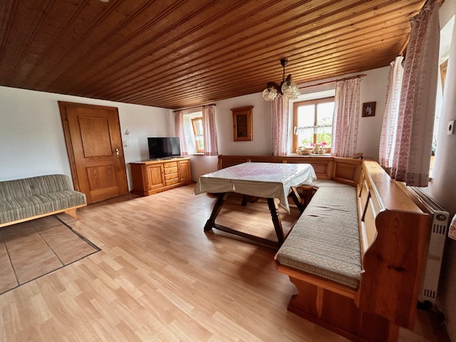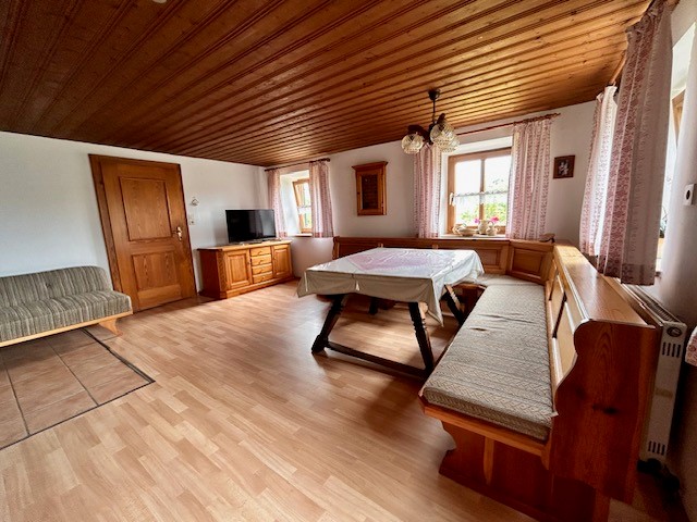 Genießen Sie entspannte Tage in unserer rustikalen Ferienwohnung. Das 3-Bett Zimmer ist mit einem Doppelbett und einem Einzelbett ausgestattet. Bettwäsche wird 2-wöchentlich gewechselt. Die Bauernstube bietet eine traditionelle Eckbank, ein Kanapee, einen Fernseher und einen Schwedenofen. In der Küche mit Eckbank finden Sie Kühlschrank, Kochplatten, Backrohr, Geschirrspüler, Kaffeemaschine und Holzofen. Das neue, behindertengerechte Bad verfügt über Waschbecken, Dusche und WC. Hand- und Badetücher werden wöchentlich gewechselt. Draußen erwartet Sie ein Garten und eine Terrasse mit Sitzgelegenheit.