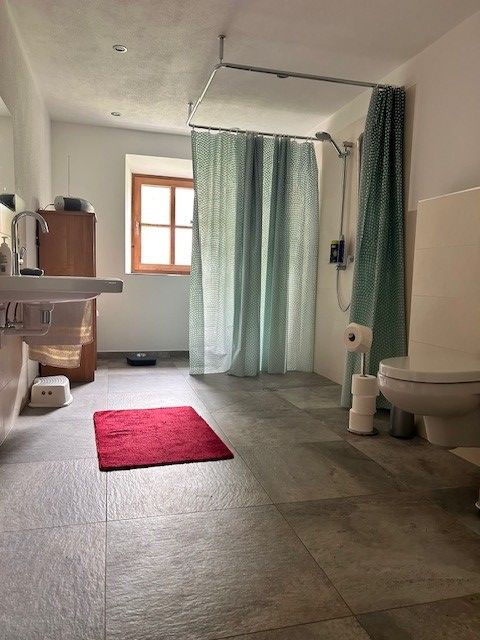 Neues, behindertengerechtes Bad mit Waschbecken, Dusche und WC. Wechsel der Hand- und Badetücher 2 x wöchentlich.