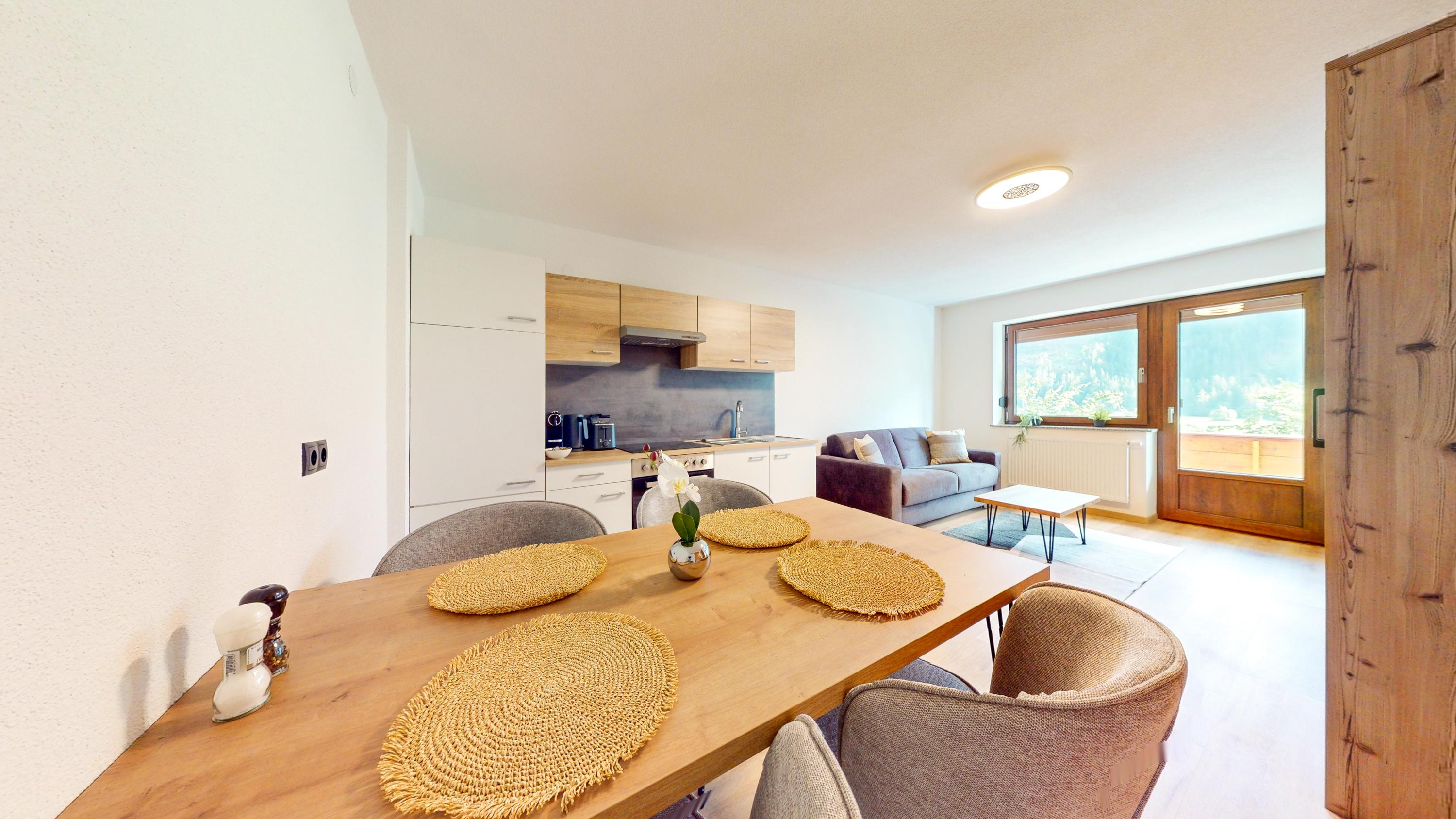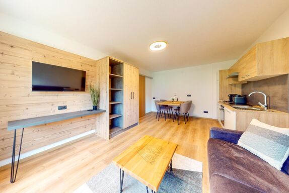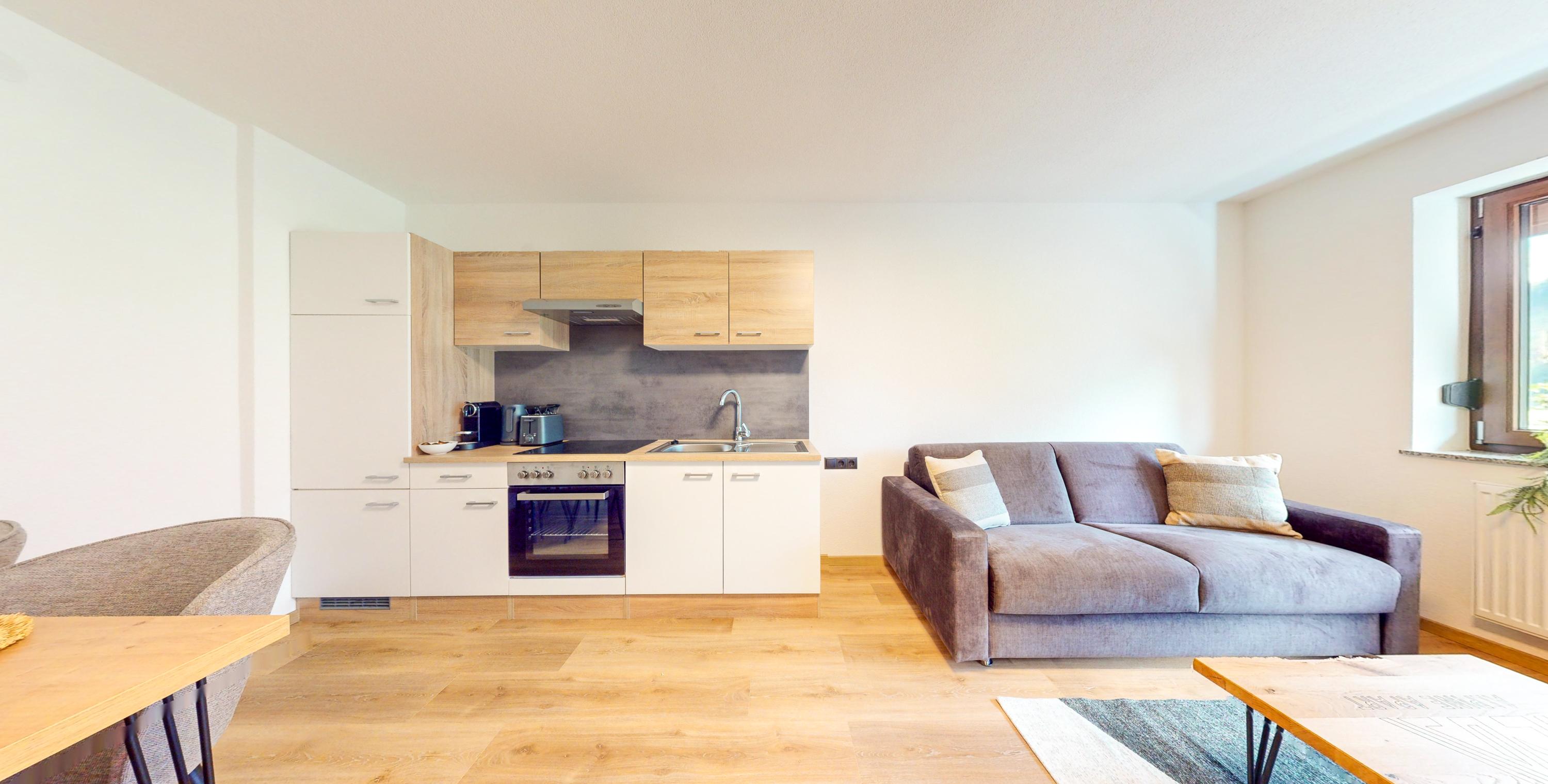 Das Apartment KARKOPF (ca. 40m²) besteht aus einem Doppelzimmer inkl. TV, einem Badezimmer mit Dusche/WC inkl. Haarföhn, einem gemütlichen Wohn- Essbereich mit Sitzgelegenheit inkl. TV (Schlafmöglichkeit für die 3. und 4. Person) mit offener Küche mit 4 Cerankochfeldern, Backofen, Geschirrspüler, Kühlschrank inkl. Gefrierfach, Mikrowelle, Kaffeekapselmaschine (Nespresso), Wasserkocher, Toaster. Mit Balkon.