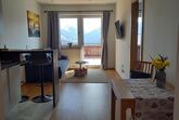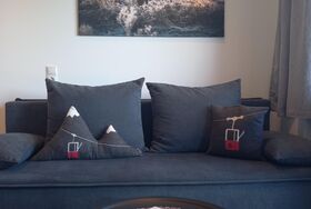 Im luxuriösen Boxspringbett idyllische Zweisamkeit genießen. Hell und modern lädt der Wohnraum mit Sofa, TV, Esstisch und der voll ausgestatteten Küchenzeile zum Entspannen und Wohlfühlen ein.