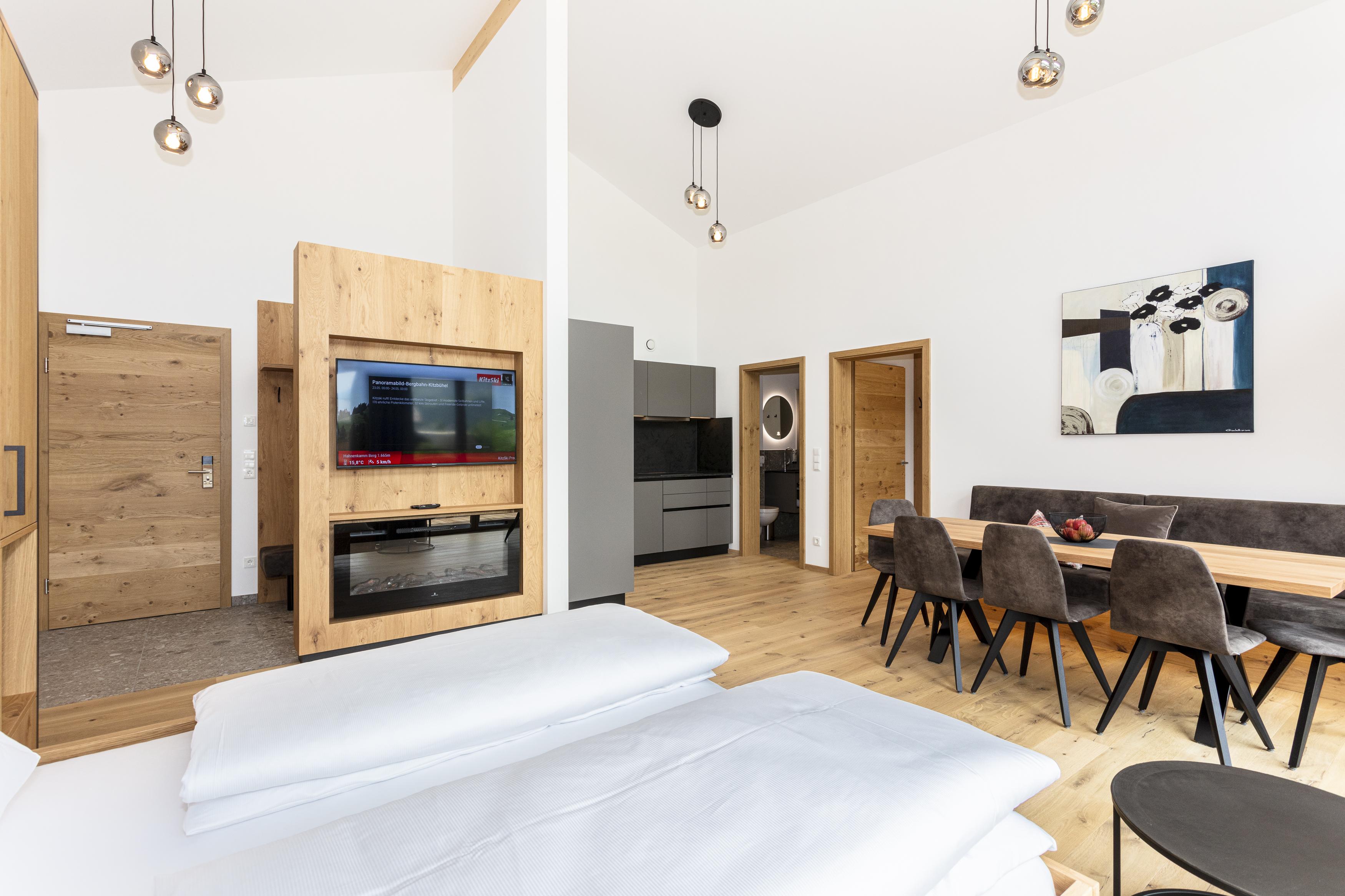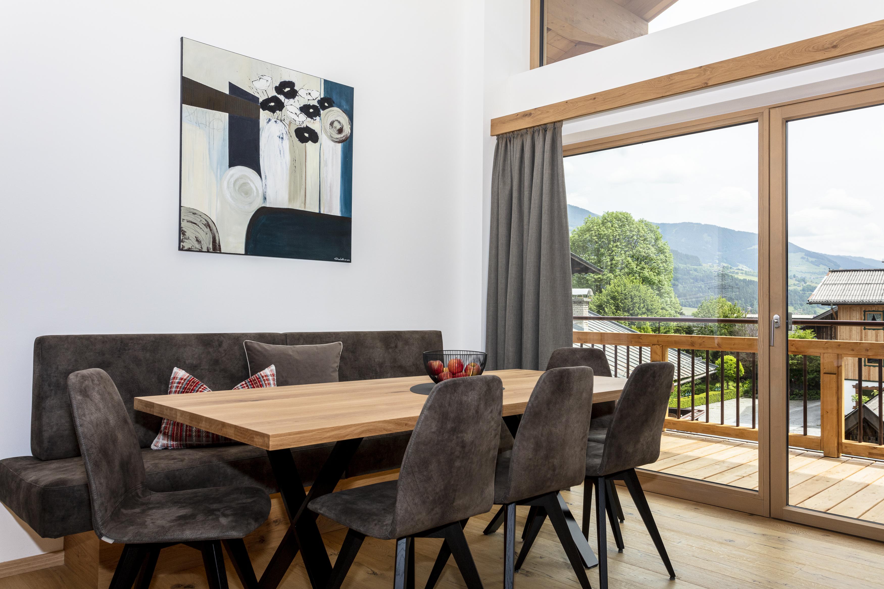 Ferienwohnung Baum - Die Lässige Penthousewohnung Die Ferienwohnung Baum im 2. Stock im Neubau bietet mit ihren lässigen 72 m2 perfekt Platz für bis zu 8 Personen. Zwei separate Schlafzimmer sorgen bei Bedarf für Privatsphäre. Zwei Bäder sorgen für einen reibungslosen Ablauf am Morgen. Der Ausblick vom 20 m2 großen Balkon in die Berge ist ein Traum!