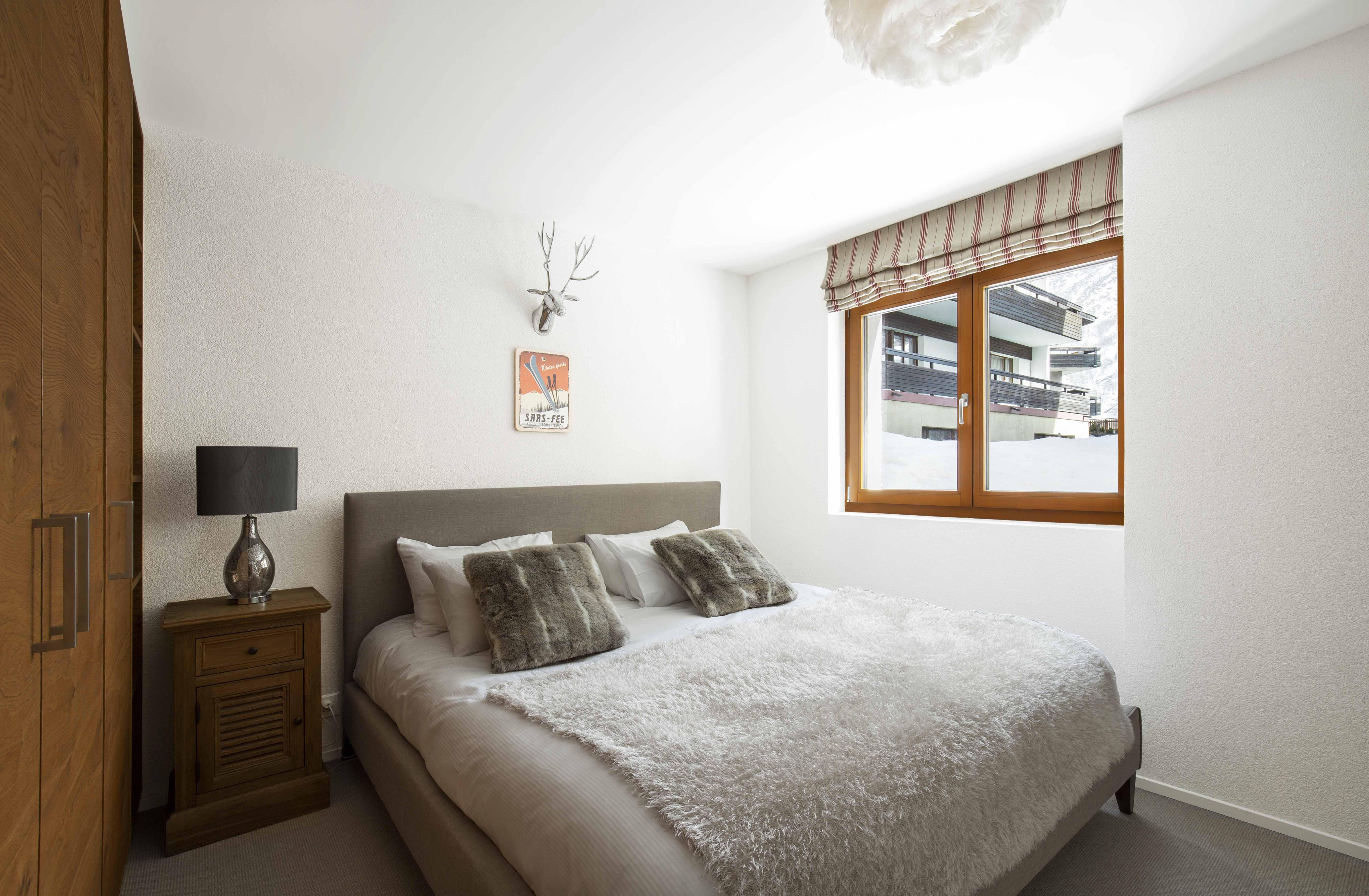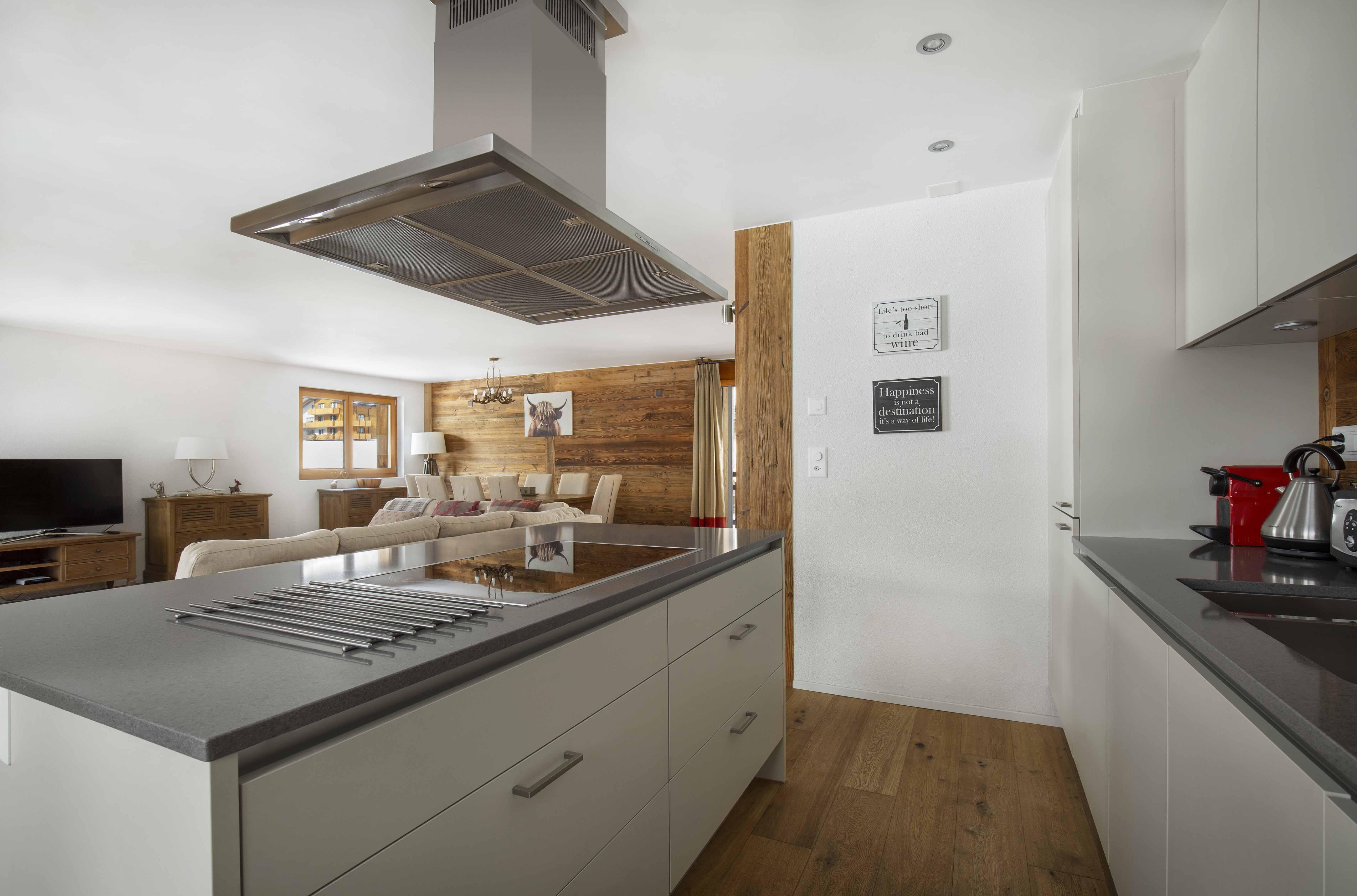 Hervorragende Duplex-Wohnung, die sich über 50% des Erdgeschosses und des ersten Stocks in der prestigeträchtigen Sonnegg Lodge-Siedlung erstreckt, die nur aus 3 Wohnungen besteht. Diese Wohnung ist geräumig und doch gemütlich, mit genügend Platz und Ausstattung, um alle zufrieden zu stellen. Die Wohnung ist sehr günstig gelegen: in der Nähe des Parkplatzes mit schnellem Zugang zum kostenlosen elektrischen Skibus an der Haltestelle Grosses Moos (direkt vor dem Haus) oder an der Haltestelle Ober Wildistrasse vor dem Snowboardgeschäft Wild One (3 Minuten zu Fuss), wo zwischen 08:30 - 12:00 und 14:00 - 17:00 Uhr regelmäßig Skibusse verkehren. Weitere Informationen finden Sie auf der Website von Saas-Fee. Der Fußweg zur Hauptstraße (Restaurants, Bars, Hotels, Geschäfte) beträgt 5-10 Minuten auf einer charmanten, autofreien Kopfsteinpflasterstraße. Die Wohnung bietet bequem Platz für 6 Personen in einem großen, offenen Wohnbereich, 3 Doppelschlafzimmern, 2 Badezimmern (eines davon en-suite und zwei Eingänge zu Badezimmer 2) und einem Balkon und einer Terrasse auf der Rückseite des Hauses. Die Küche ist voll möbliert und mit Geräten und Utensilien ausgestattet. Das Wohnzimmer hat einen großen 65 Fernseher. Das gesamte Haus ist mit einer Fußbodenheizung ausgestattet und verfügt über einen wunderschönen Holzofen. Holzscheite werden bei Ihrer Ankunft bereitgestellt.
