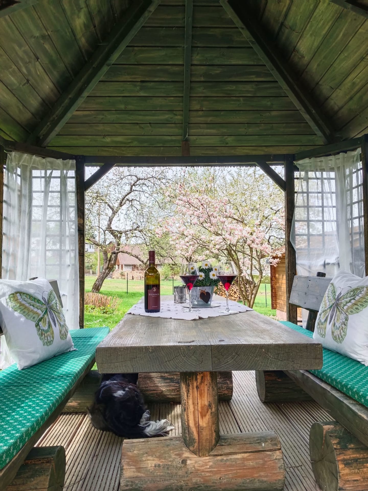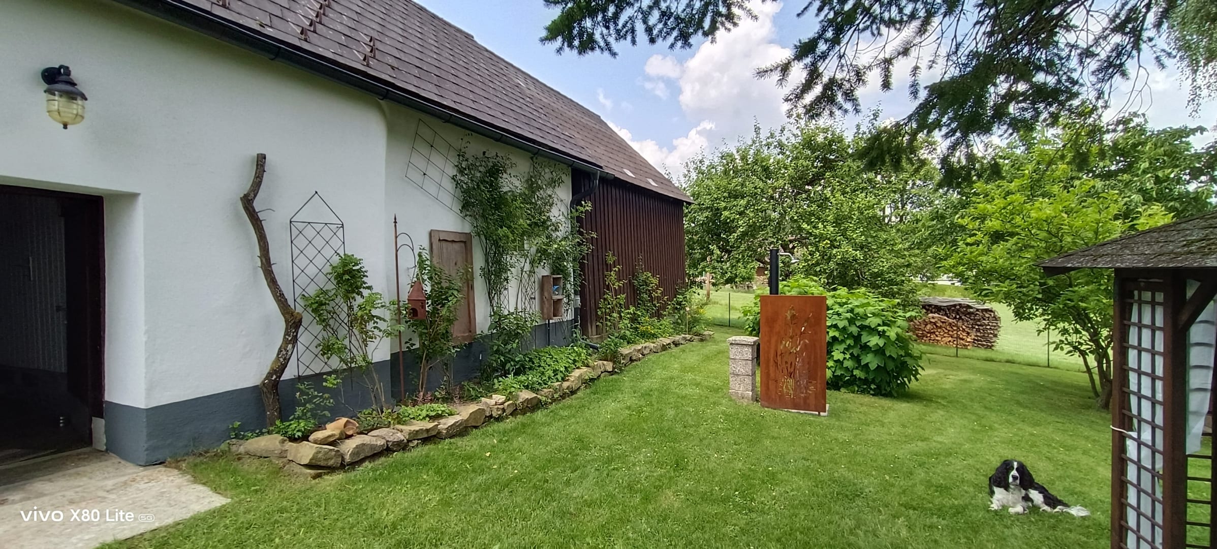 Ein romantischer Ruhepol für 2-3 Personen zur Alleinnutzung. Kräuter, Obst und Gemüse kann gerne der Jahreszeit entsprechend für den täglichen Bedarf aus dem Garten entnommen werden. Ihr Frühstück können sie im liebevollen renovierten Innenhof oder im Aussenbereich sprich Pavillon geniesen. Erholsame Tage können sie im großen Garten unter Schatten spendenden Bäumen oder in der Laube verbringen. An manchen ruhigen Abenden kann man den Rehen beim Abendessen auf der angrenzenden Wiese zusehen.