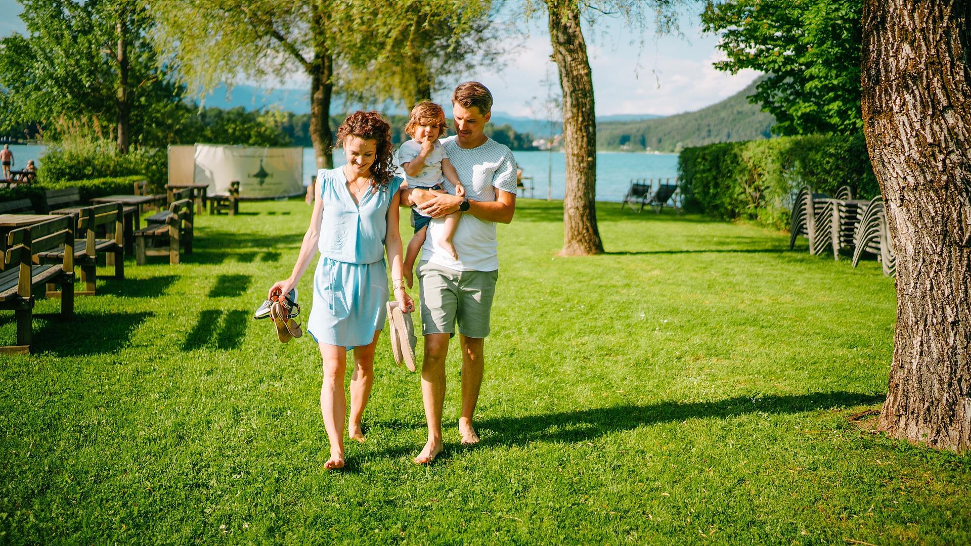 Das Stammhaus steht außerhalb des Ortes Faak am See, mitten im Grünen, sonnenbegünstigt mit freiem unverbauten Ausblick auf die Bergwelt und Weidevieh. Für Badefreunde gibt es den großen, eigenen Badestrand am Faakersee mit flach abfallendem Sandstrand!
