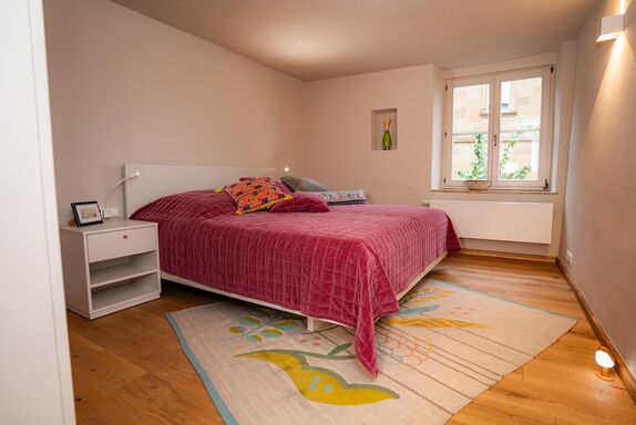 Diese wunderschöne Wohnung kann mit bis zu 6 Personen genutzt werden. Sie ist im Untergeschoss eines denkmalgeschützten Hauses. Es gibt 2 Schlafzimmer ein Wohnzimmer eine offene Küche mit Essplatz sowie ein Badezimmer und eine Toilette. Die Wohnung ist Exklusiv eingerichtet und es fehlt nichts zum Wohlfühlen. Am Abend könne Sie in einem Saunagarten mit holzbefeuerter Sauna entspannen. Unser Backhaus mit Kamin und Pizzaofen kann für einen gemütlichen Spieleabend genutzt werden.