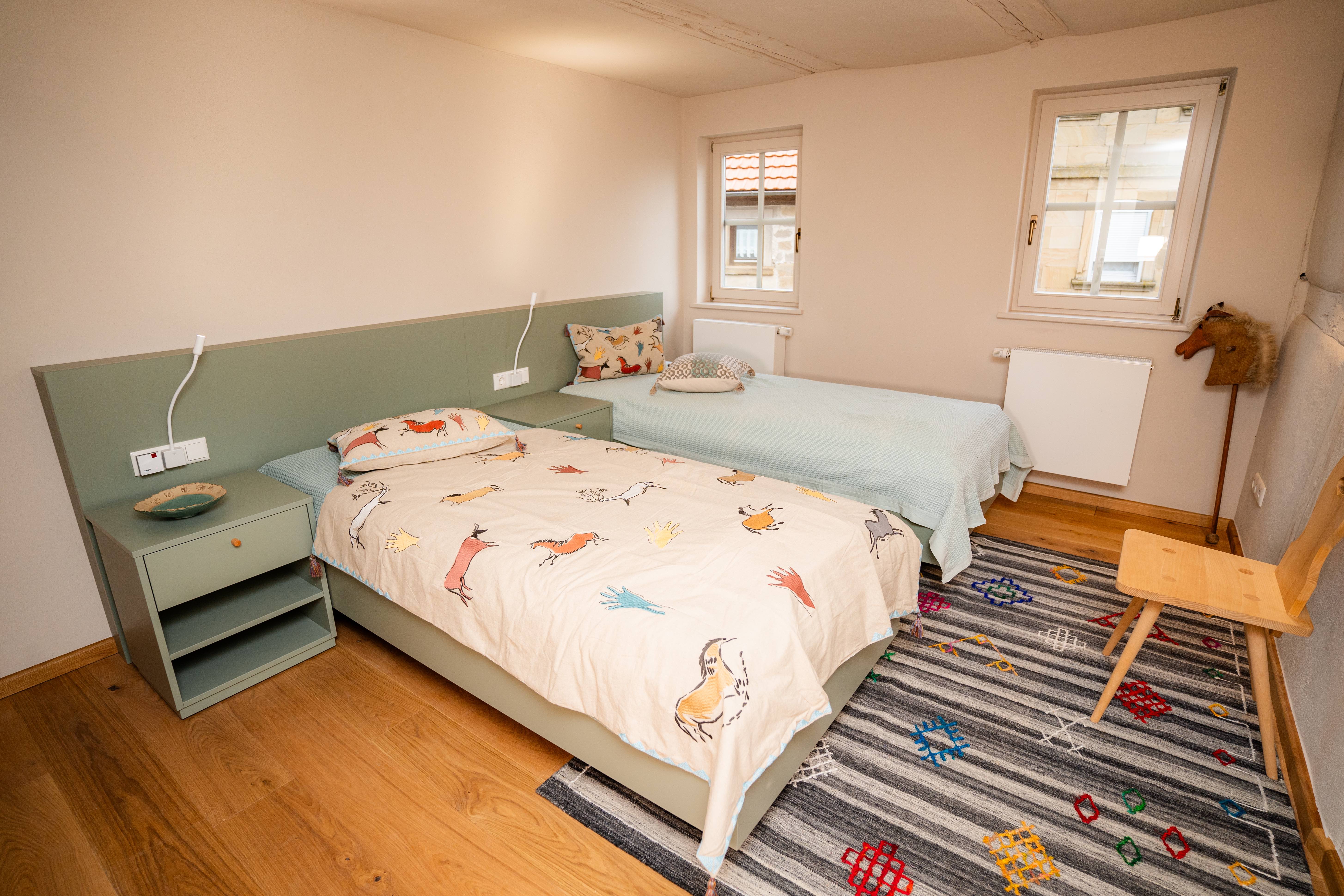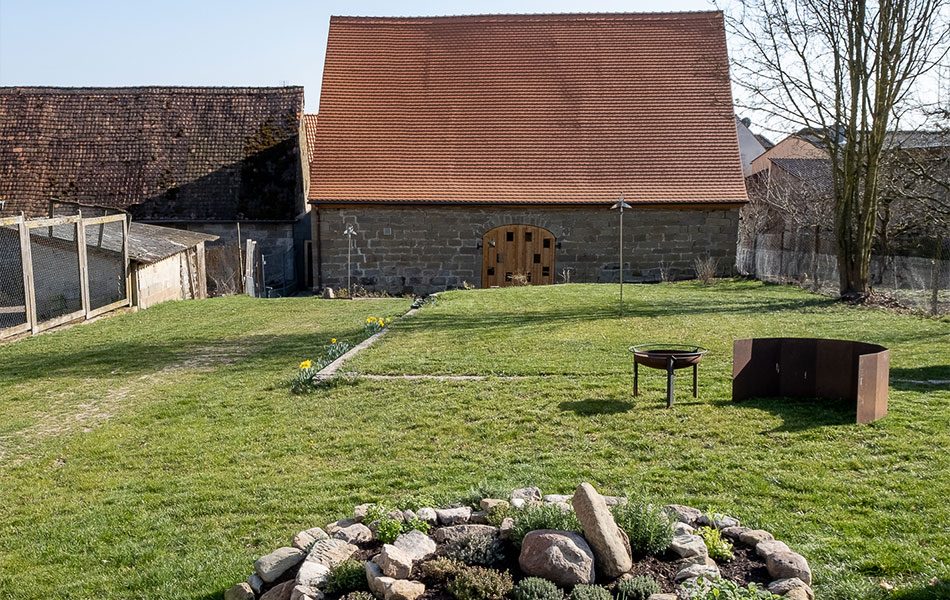 Am Abend entspannen Sie in einem kleinen Saunagarten mit holzbefeuerter Sauna, der gemütlichen Scheune oder bei einem Spieleabend im Backhaus mit Kamin und Pizzaofen. Für Brutzzler steht ein Grill zur Verfügung. Wer es bequemer mag findet in unserem Dorfgasthof fränkische Küche. Unsere Wohnungen bieten jeweils Schlafplätze für 6 Personen Eine voll eingerichtete Küche eine kleine Bibliothek. Waschmaschine und Trockner sind vorhanden.