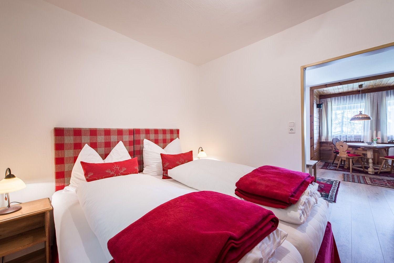 Exklusives Schlafzimmer mit modernen Boxspring-Betten im Tiroler Living Stile - Safe -