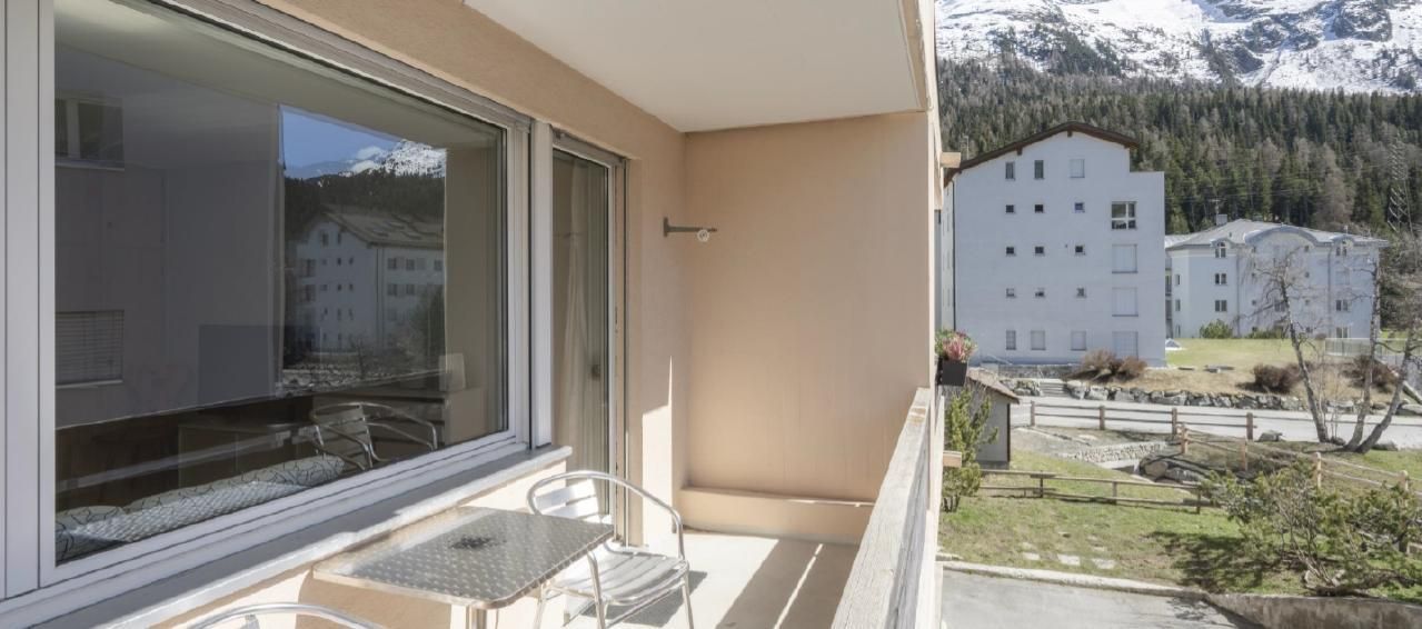 Sonnige 2.5-Zimmer-Wohnung im 2. Stock, ruhig gelegen mit sonnigem Balkon, Aussicht auf Piz Nair und Corviglia.