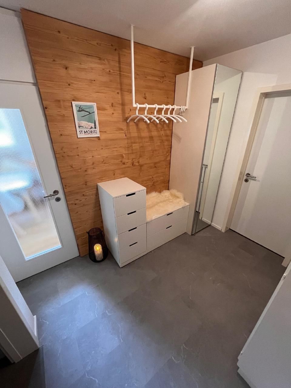 Ebenfalls im Entrée Garderobe und Einbauschrank mit viel Stauraum. In der Wohnung hat es freien Internet WLAN-Zugang.