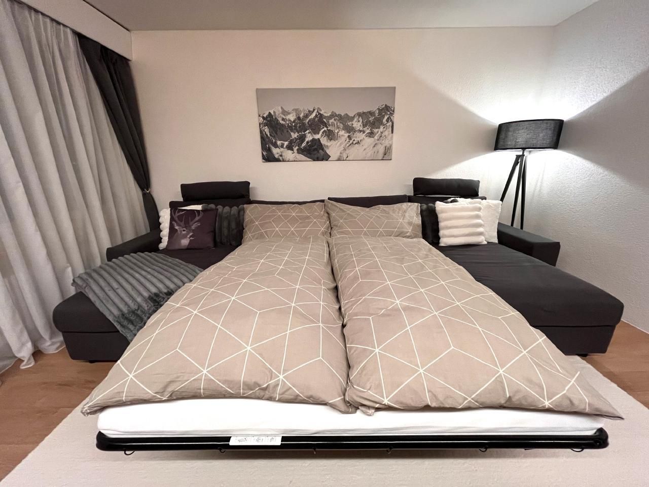 Sonstige Wohnzimmerausstattung (Wohnzimmer1): Das Sofa kann schnell und einfach in ein 1.40 x 2.00 grosses, bequemes Bett inkl. Lattenrost und hochelastischer Kaltschaum Matratze verwandelt werden.