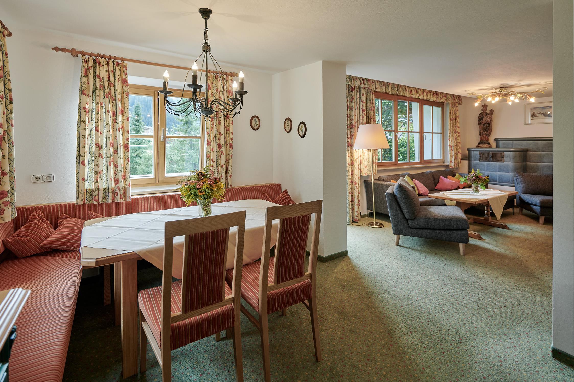 Unser Chalet, nur 40 m vom Haupthaus entfernt und unterirdisch verbunden, verfügt über 3 Doppelbett-Schlafzimmer, und 1 Einzelzimmer mit möglichem Stockbett, großem Wohnraum, Küchenzeile mit Backofen und Mikrowellenhard sowie großer Essecke, Waschmaschine und Trockner, Balkon und Terrasse; für 6-8 Personen; Sämtliche Hoteleinrichtungen wie Hallenbad, Whirlpool, Wellnesanlagee, Hotelkindergarten, Garage sind im Preis inbegriffen. Verpflegung direkt bei Anreise gegen Aufpreis buchbar.