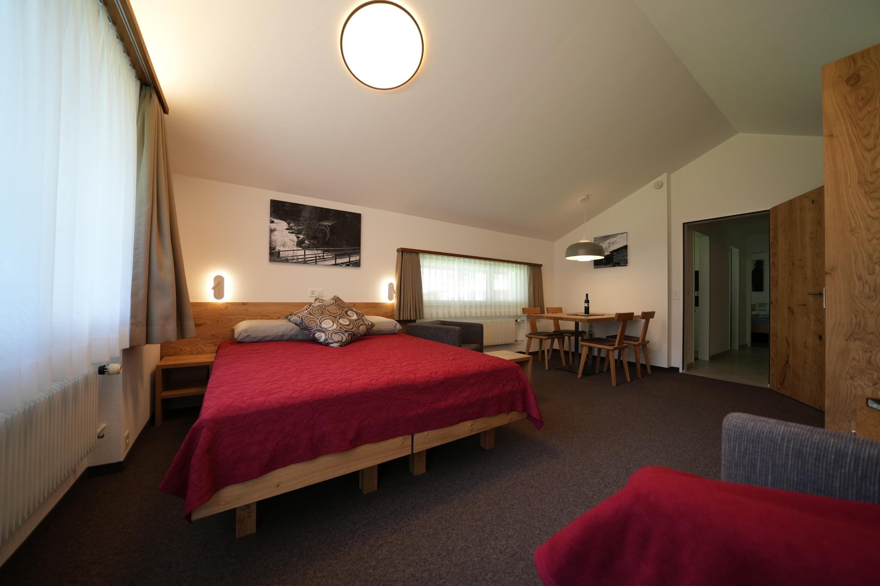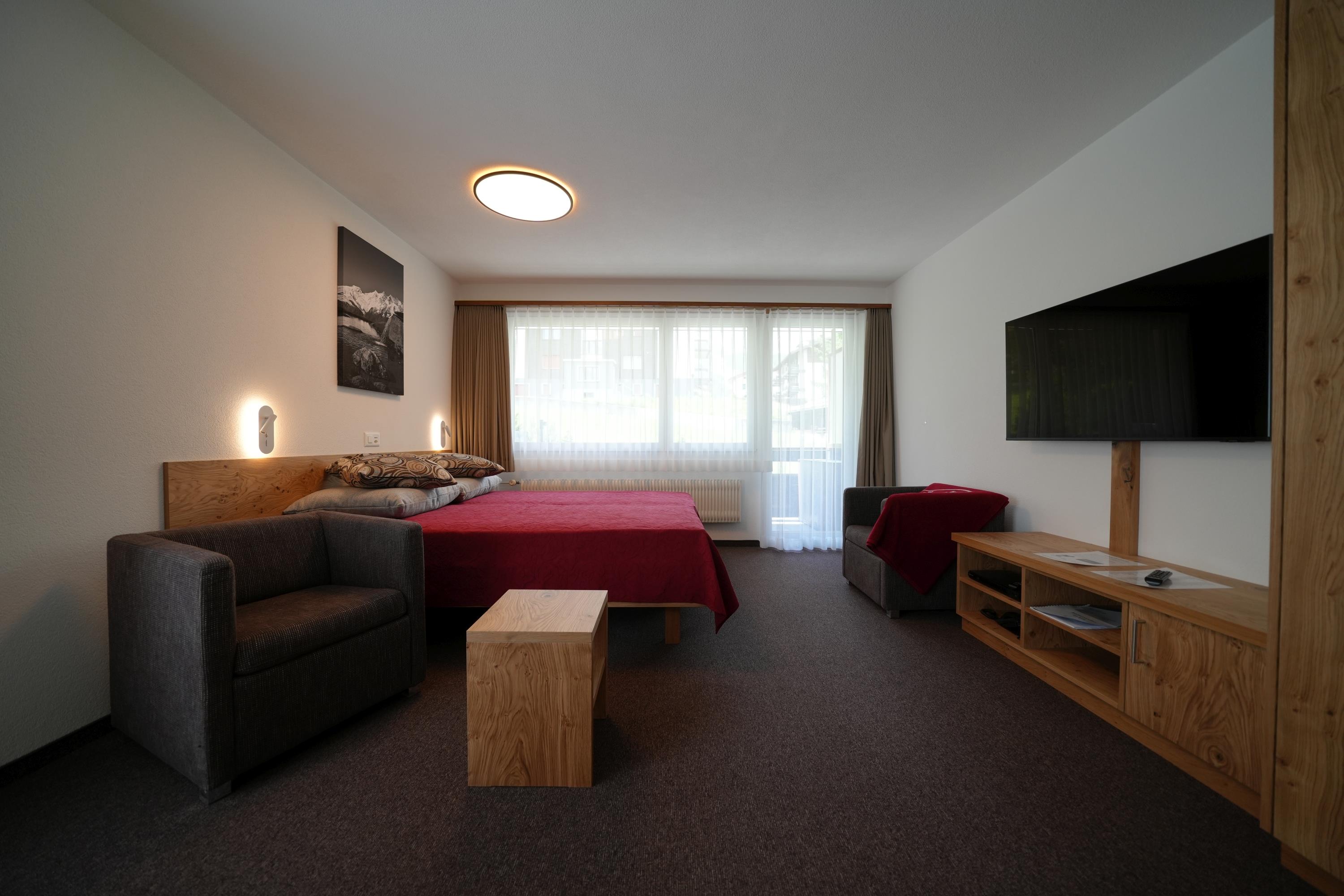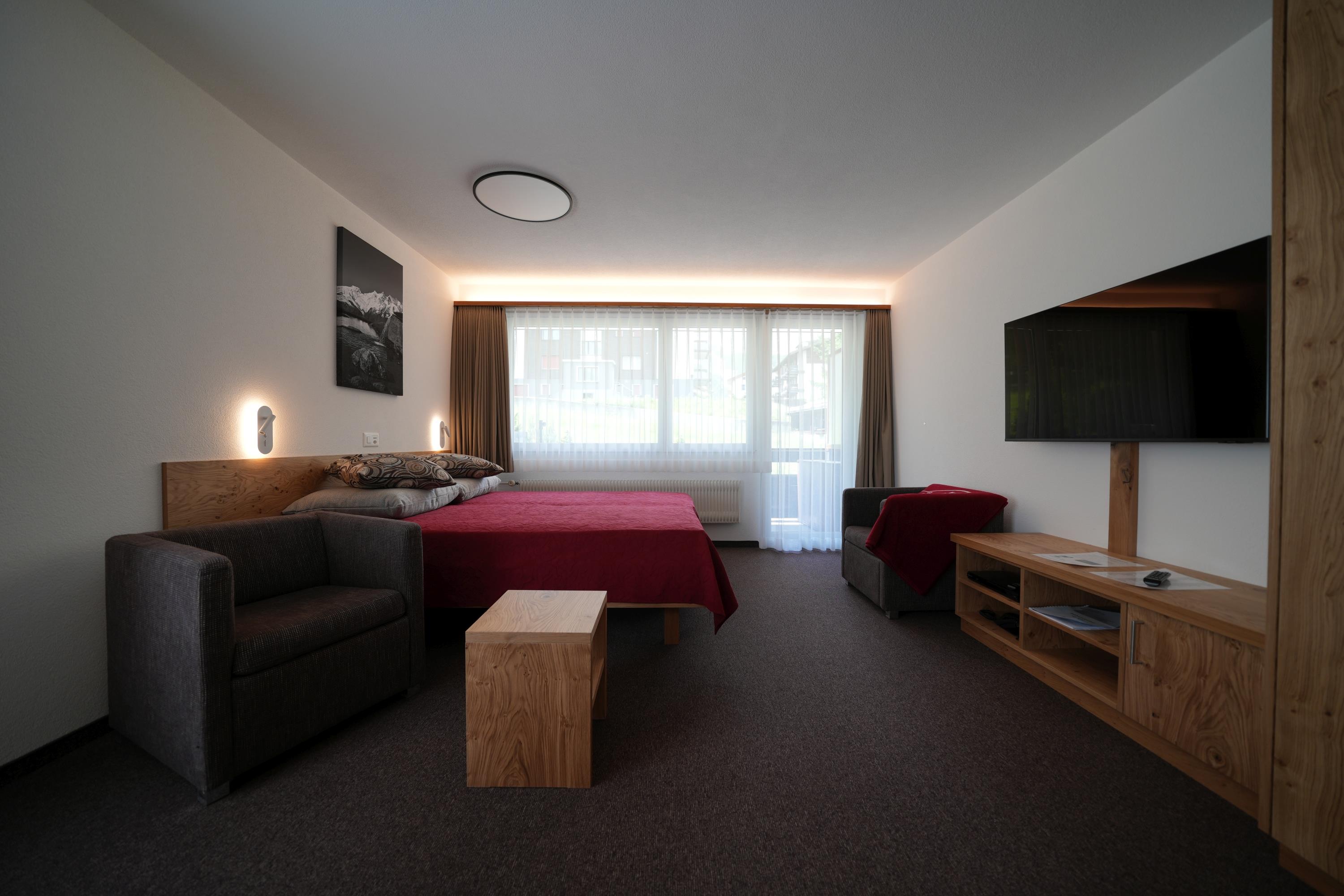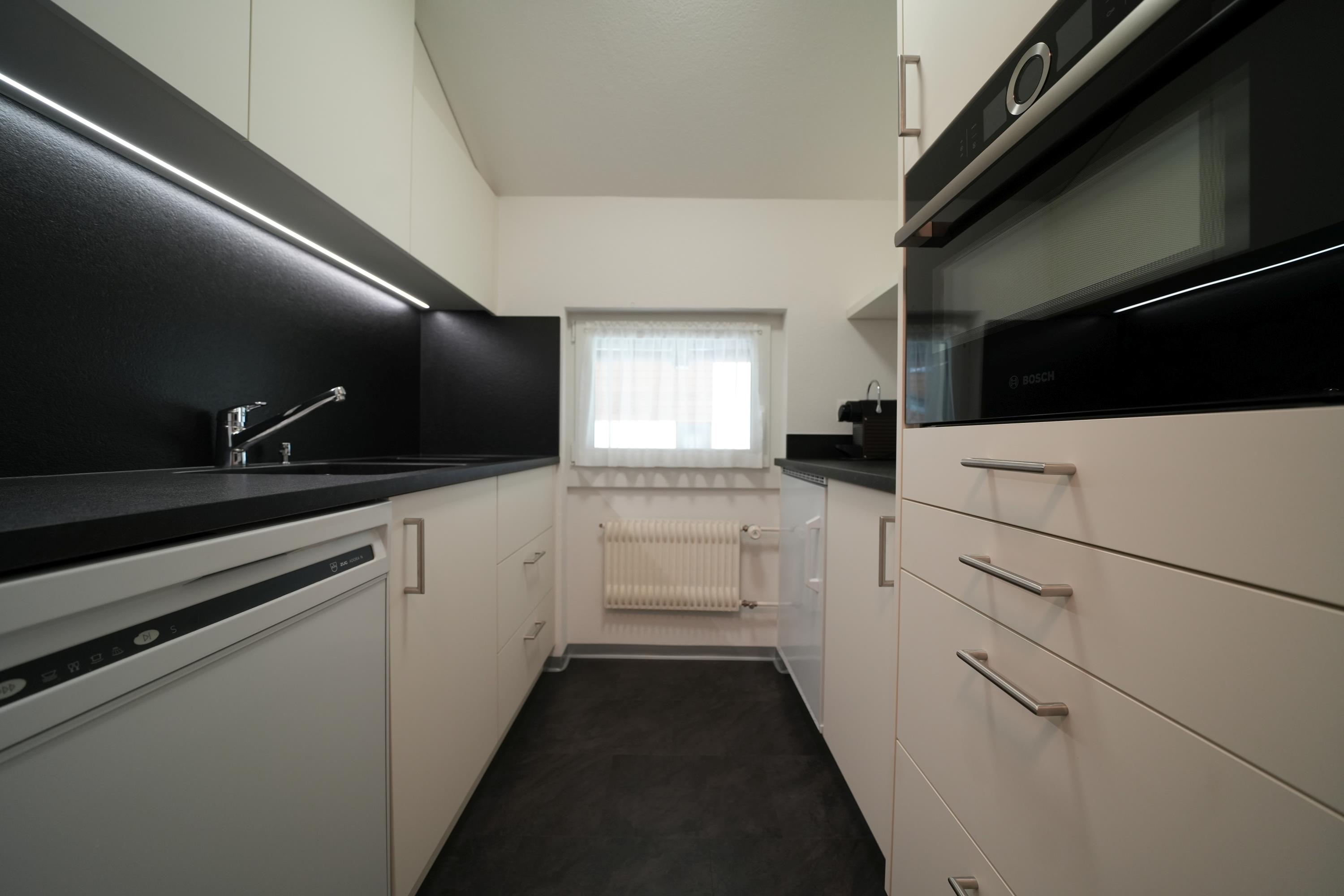 Separate Küche mit Geschirrspüler (Tabs inkl.), Induktions-Kochherd, Backofen-Mikrowelle, Kühlschrank mit Gefrierfach, Toaster, Nespresso Kapsel-Kaffeemaschine, Wasserkocher, Salz und Pfeffer Mühle, 1 Doppelschlafzimmer mit Lavabo, Wohn-Schlafraum, Sitzgruppe, Esstisch, 50 Multimedia Flat-TV, Google Chromecast - Apple AirPlay - Samsung Smart View, Kabel-TV über 100 Sender, Blu-Ray/DVD Player, USB Ladegerät, Kabel-Radio, Safe, Bad/WC mit Haartrockner, Bett - Bad - und Küchenwäsche vorhanden, Süd-Balkon, Telefon-Europa Flatrate. Gratis Highspeed Internet (WiFi und Ethernet). Grosse Blu-Ray Videothekauswahl.
