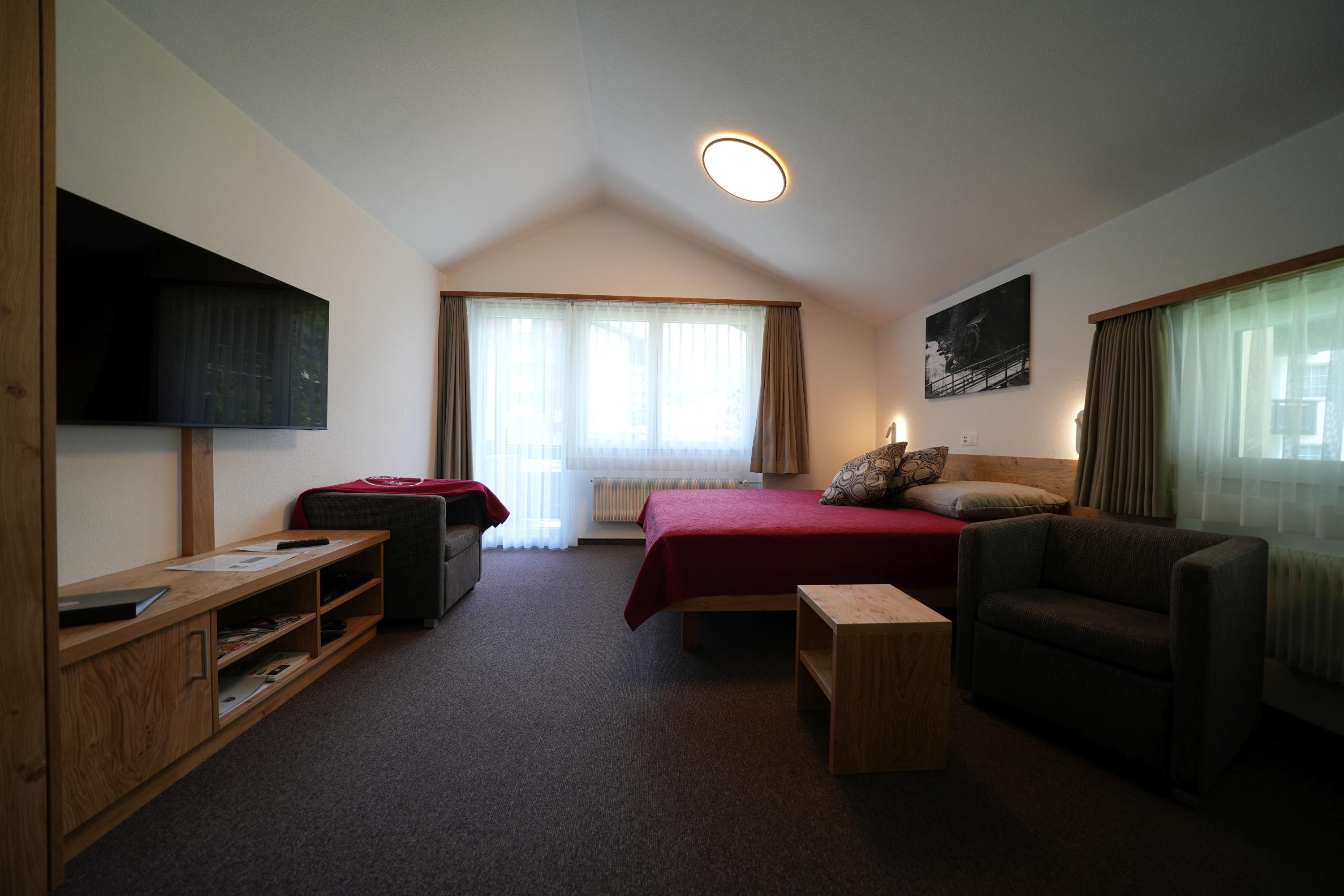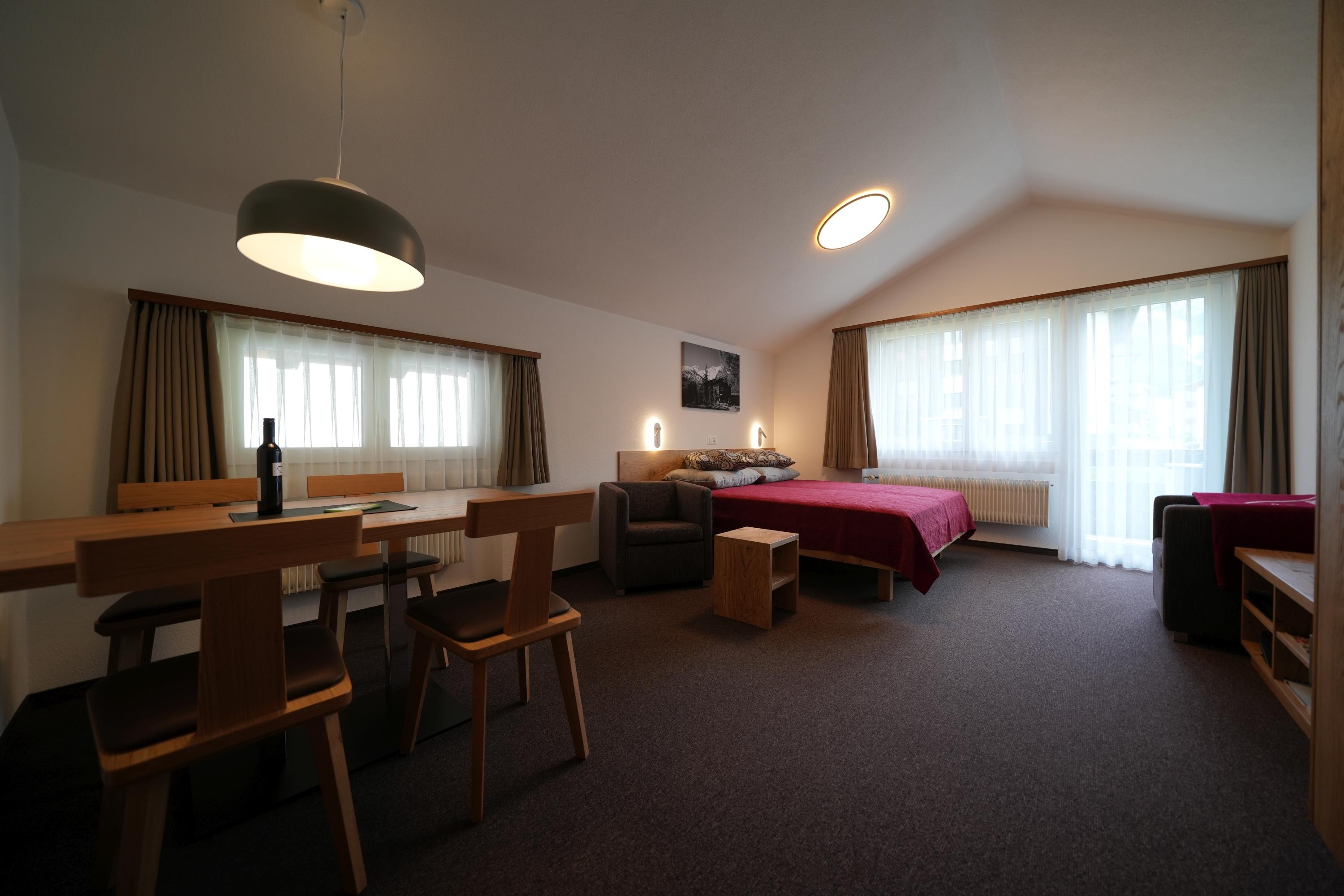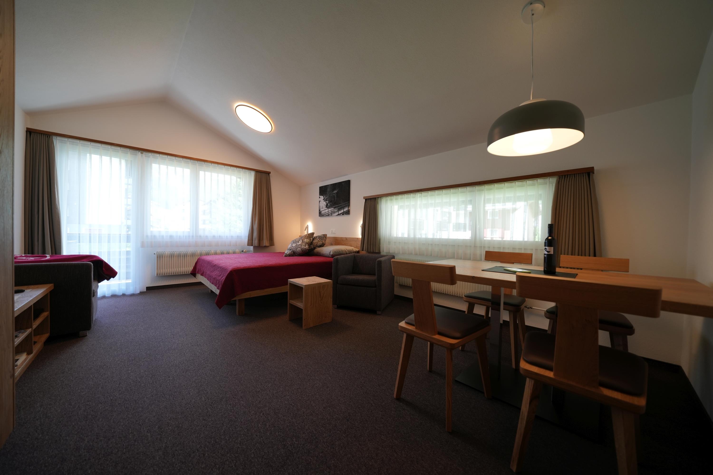 Separate Küche mit Geschirrspüler (Tabs inkl.), Induktions-Kochherd, Backofen-Mikrowelle, Kühlschrank mit Gefrierfach, Toaster, Nespresso Kapsel-Kaffeemaschine, Wasserkocher, Salz und Pfeffer Mühle, 1 Doppelschlafzimmer mit Lavabo, Wohn-Schlafraum, Sitzgruppe, Esstisch, 50 Multimedia Flat-TV, Google Chromecast - Apple AirPlay - Samsung Smart View, Kabel-TV über 100 Sender, Blu-Ray/DVD Player, USB Ladegerät, Kabel-Radio, Safe, Bad/WC mit Haartrockner, Bett - Bad - und Küchenwäsche vorhanden, Süd-Balkon, Telefon-Europa Flatrate. Gratis Highspeed Internet (WiFi und Ethernet). Grosse Blu-Ray Videothekauswahl.