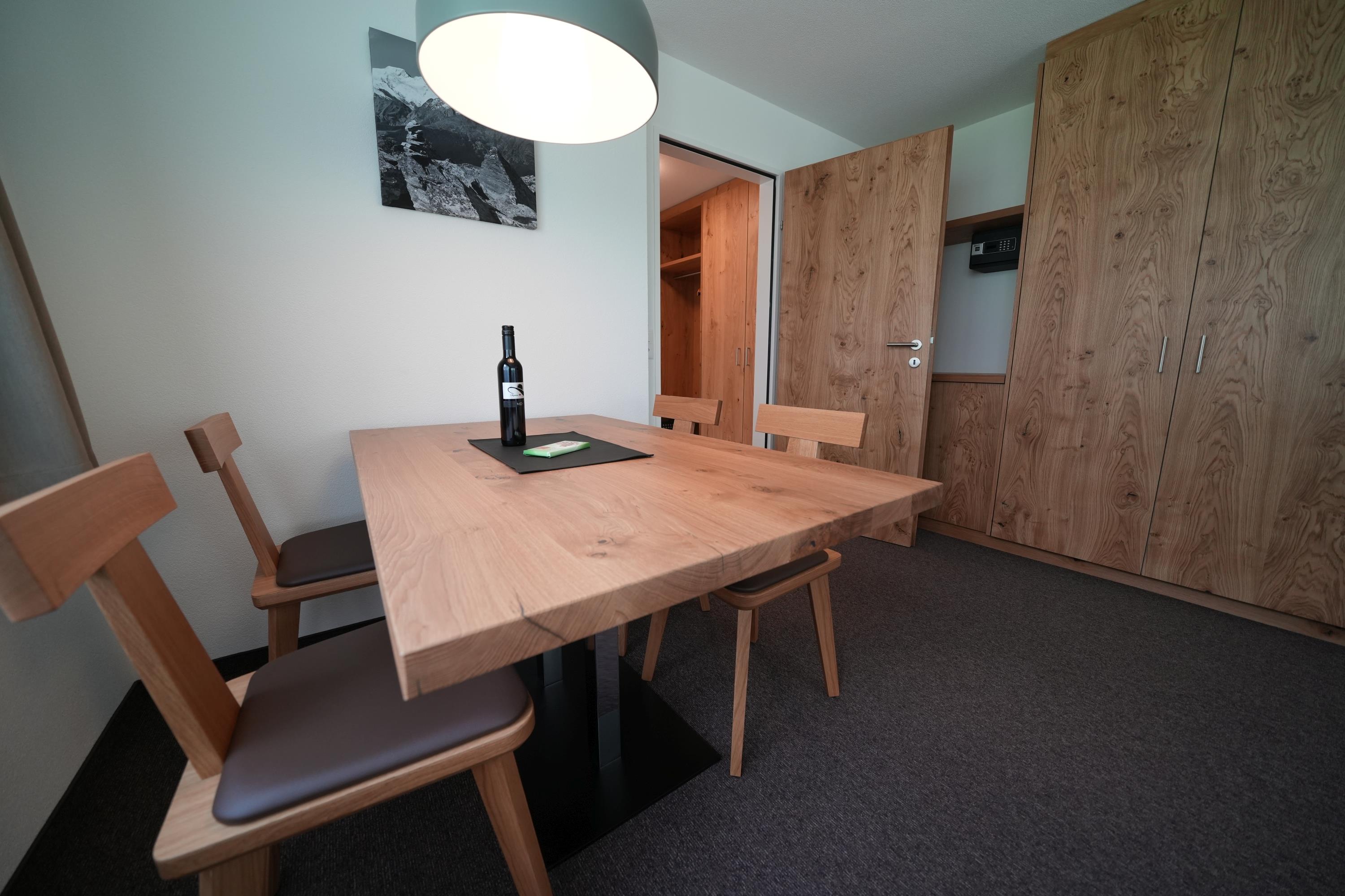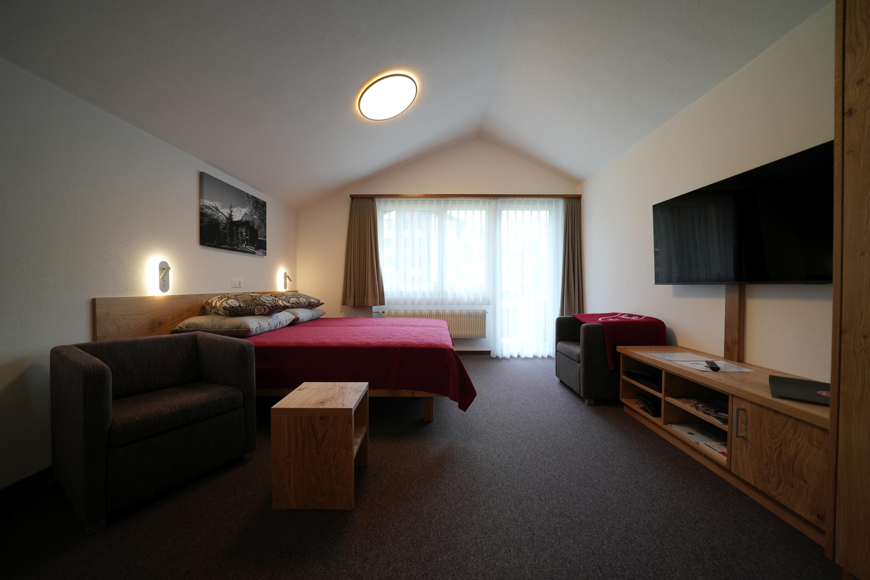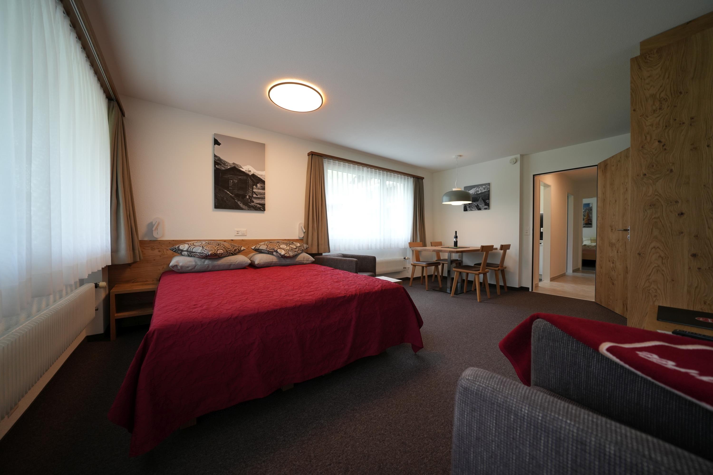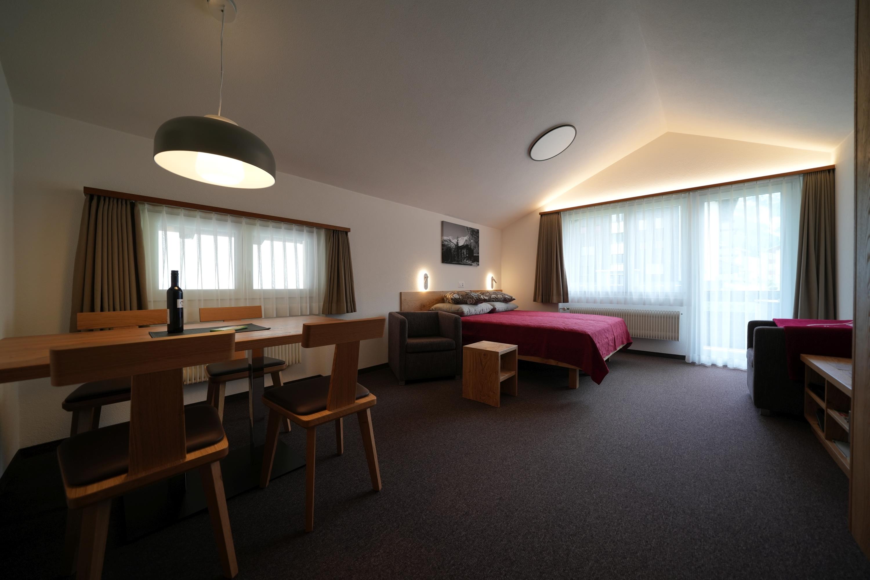 Separate Küche mit Geschirrspüler (Tabs inkl.), Induktions-Kochherd, Backofen-Mikrowelle, Kühlschrank mit Gefrierfach, Toaster, Nespresso Kapsel-Kaffeemaschine, Wasserkocher, Salz und Pfeffer Mühle, 1 Doppelschlafzimmer mit Lavabo, Wohn-Schlafraum, Sitzgruppe, Esstisch, 50 Multimedia Flat-TV, Google Chromecast - Apple AirPlay - Samsung Smart View, Kabel-TV über 100 Sender, Blu-Ray/DVD Player, USB Ladegerät, Kabel-Radio, Safe, Bad/WC mit Haartrockner, Bett - Bad - und Küchenwäsche vorhanden, Süd-Balkon, Telefon-Europa Flatrate. Gratis Highspeed Internet (WiFi und Ethernet). Grosse Blu-Ray Videothekauswahl.