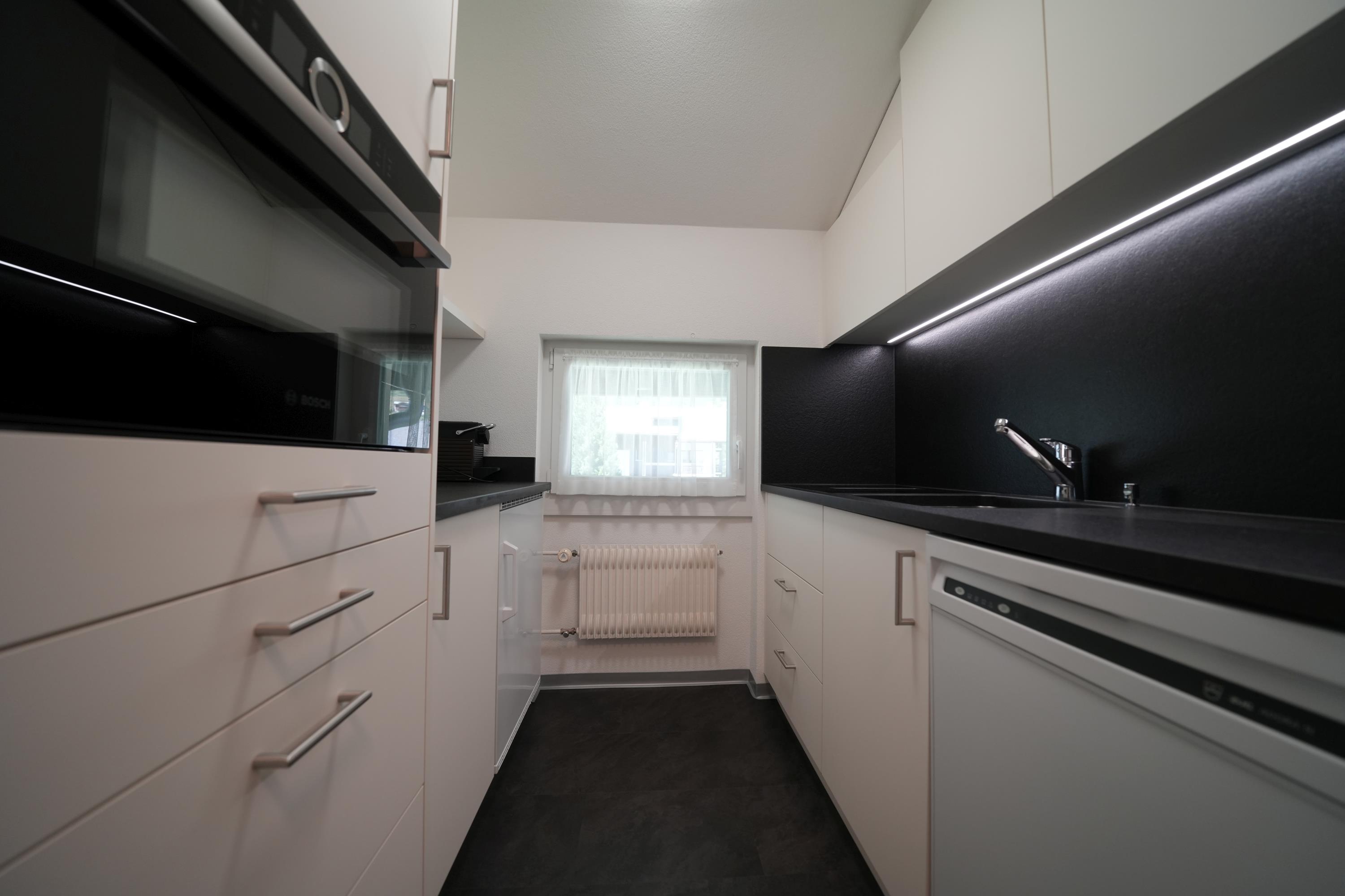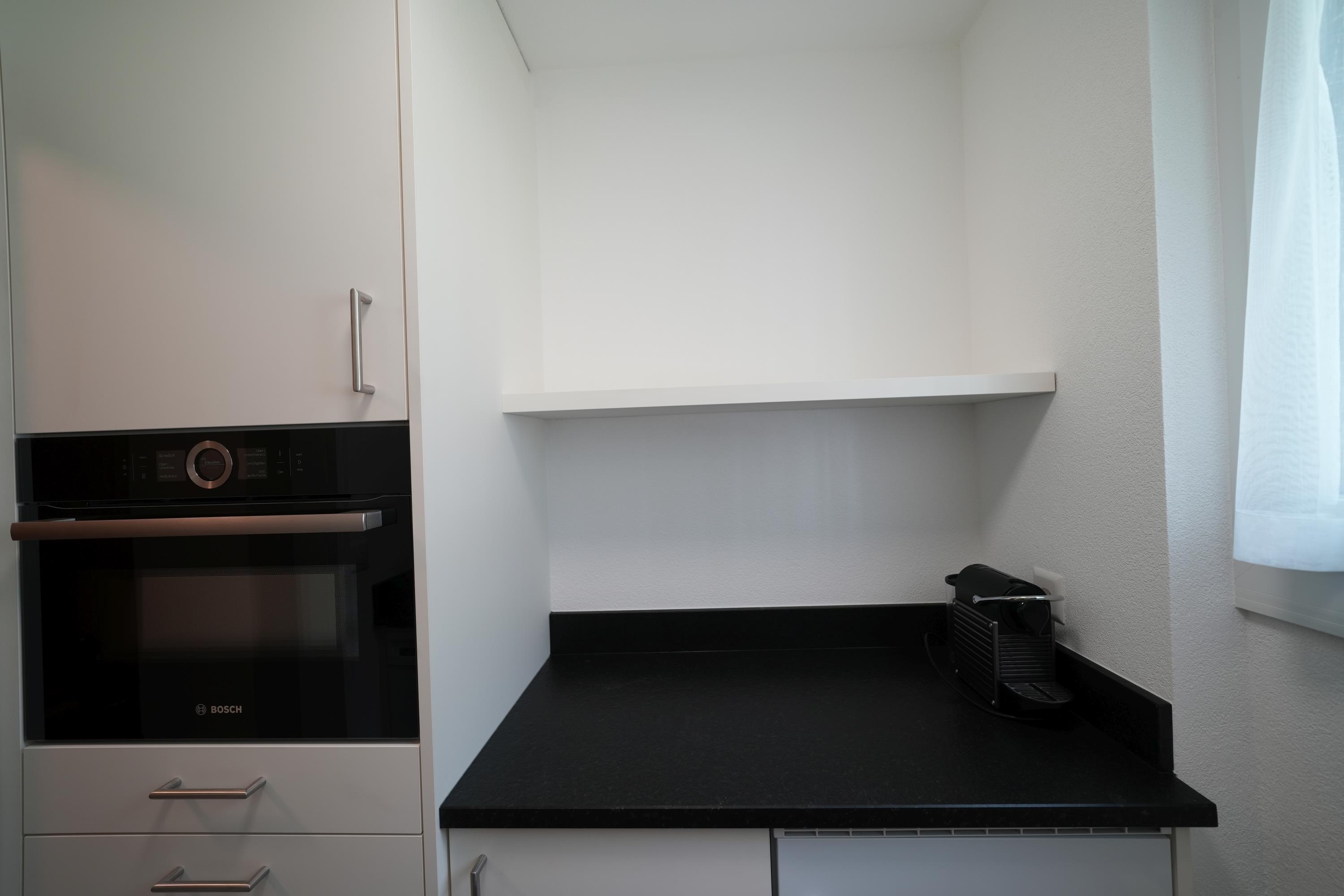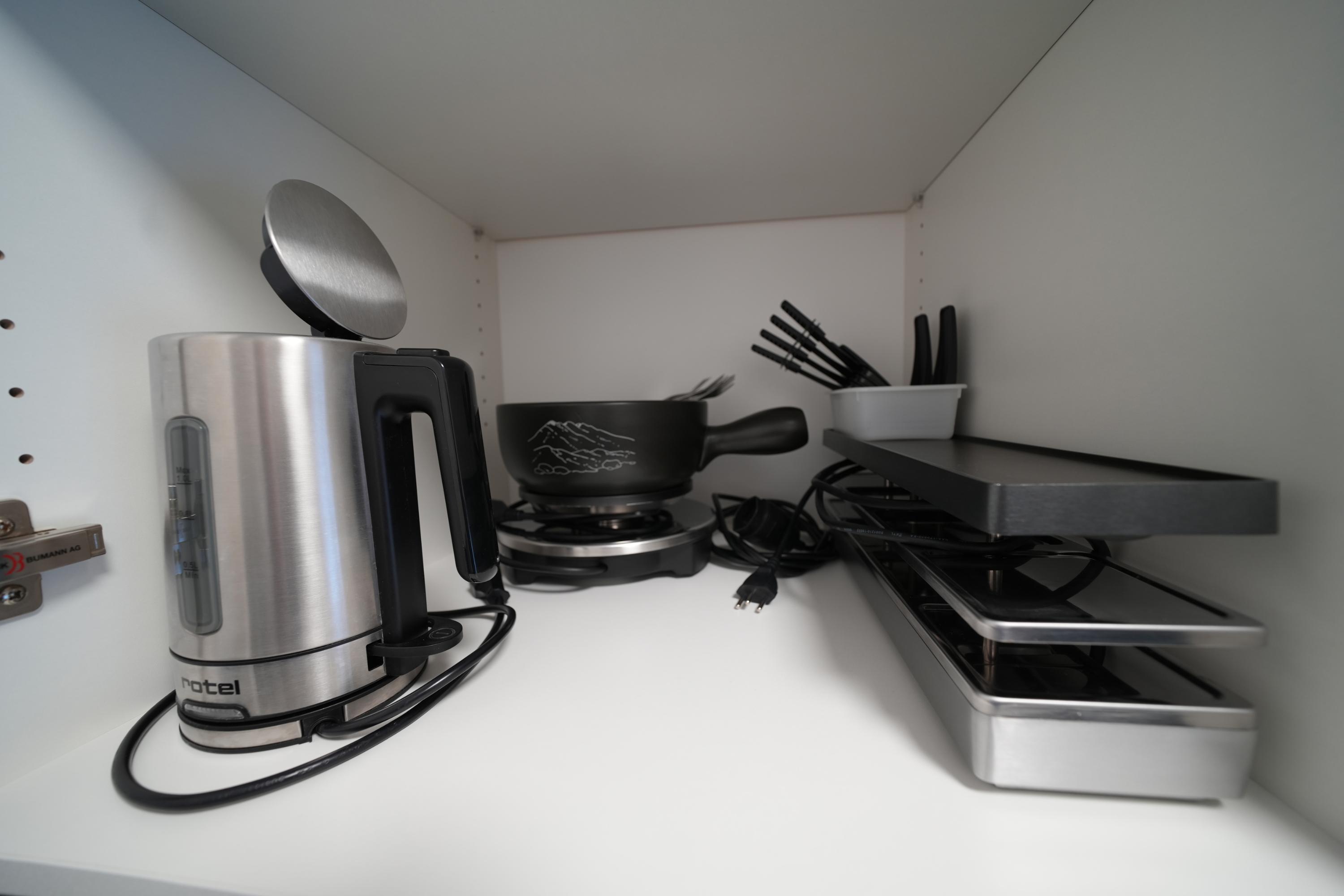 Separate Küche mit Geschirrspüler (Tabs inkl.), Induktions-Kochherd, Backofen-Mikrowelle, Kühlschrank mit Gefrierfach, Toaster, Nespresso Kapsel-Kaffeemaschine, Wasserkocher, Salz und Pfeffer Mühle, 1 Doppelschlafzimmer mit Lavabo, Wohn-Schlafraum, Sitzgruppe, Esstisch, 50 Multimedia Flat-TV, Google Chromecast, Kabel-TV über 100 Sender, Blu-Ray/DVD Player, USB Ladegerät, Kabel-Radio, Bad/WC mit Haartrockner, Bett - Bad - und Küchenwäsche vorhanden, Süd-Balkon, Telefon-Europa Flatrate. Gratis Highspeed Internet (WiFi und Ethernet). Grosse Blu-Ray Videothekauswahl.