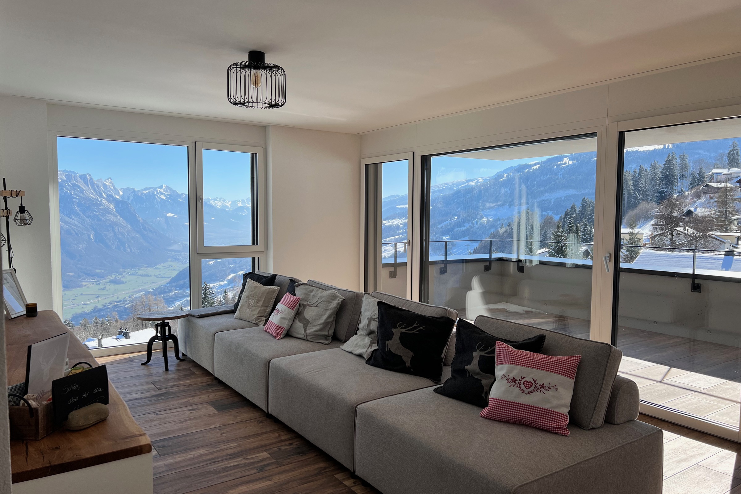 Die im 2. Stock gelegene 4.5-Zimmerwohnung, mit ihren bodentiefen Fenstern, bietet genügen Platz für 8 Personen. Sie verfügt über einen grossen Balkon mit Sicht auf das umliegende Bergpanorama, zwei Schreibtische, eine Waschmaschine und ein Wäschetrockner. Ein abschliessbarer beheizter Skiraum inklusive Skischuhtrockner ist in der Unterkunft vorhanden. Technische Einrichtung