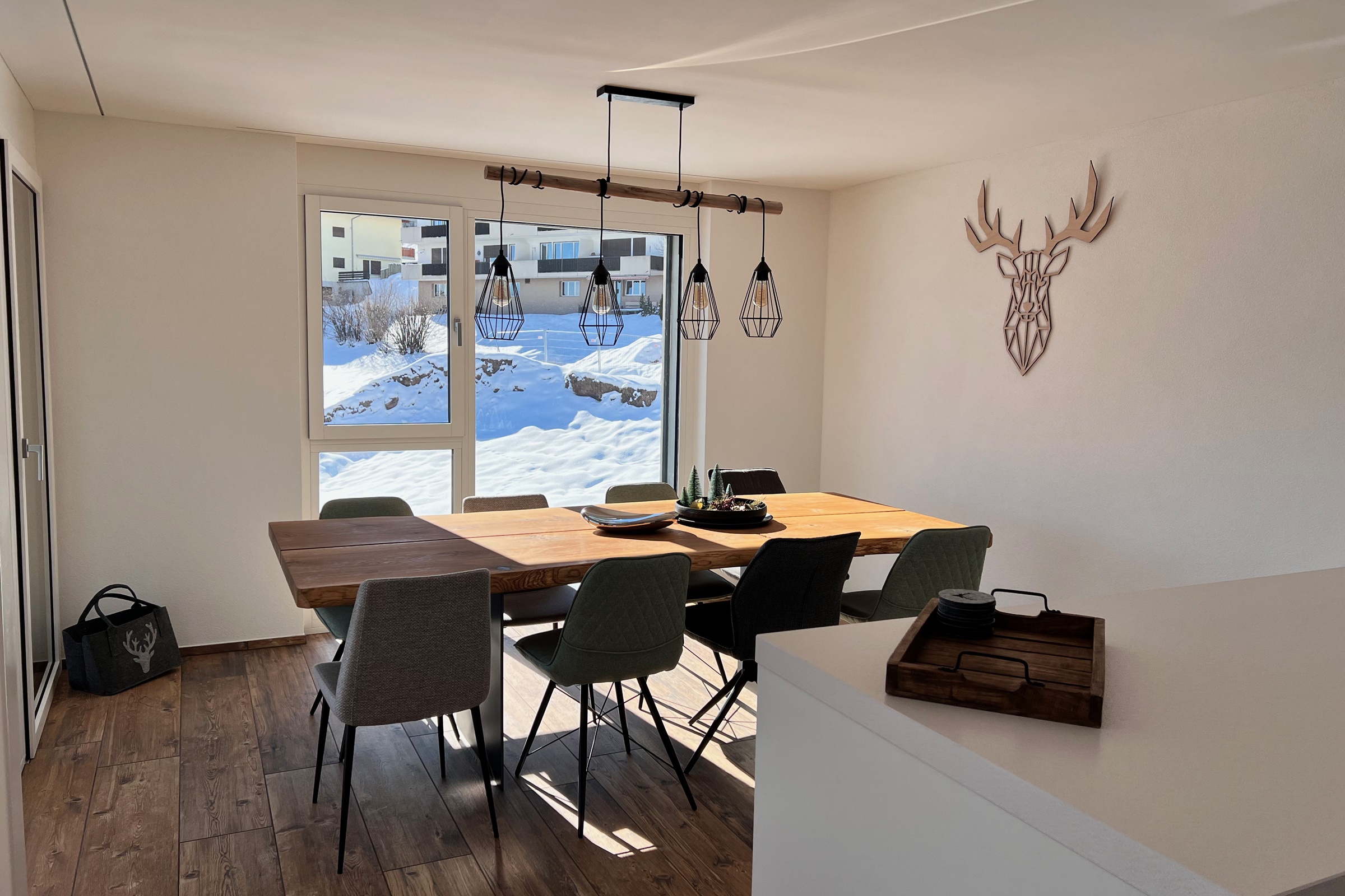 Die 4.5-Zimmerwohnung ist modern und gemütlich eingerichtet. In der Ferienwohnung steht kostenloses WLAN, Waschmaschine, Wäschetrockner sowie ein TV im Wohnzimmer zur Verfügung.