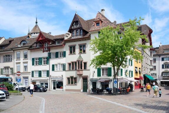 ÖV: 8 min Fussweg vom Bahnhof Schaffhausen: Schwertstrasse, Fronwagplatz, Vordergasse, Goldsteinstrasse, Münsterplatz 4.