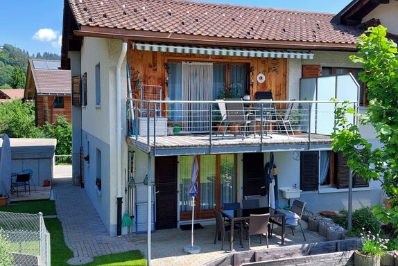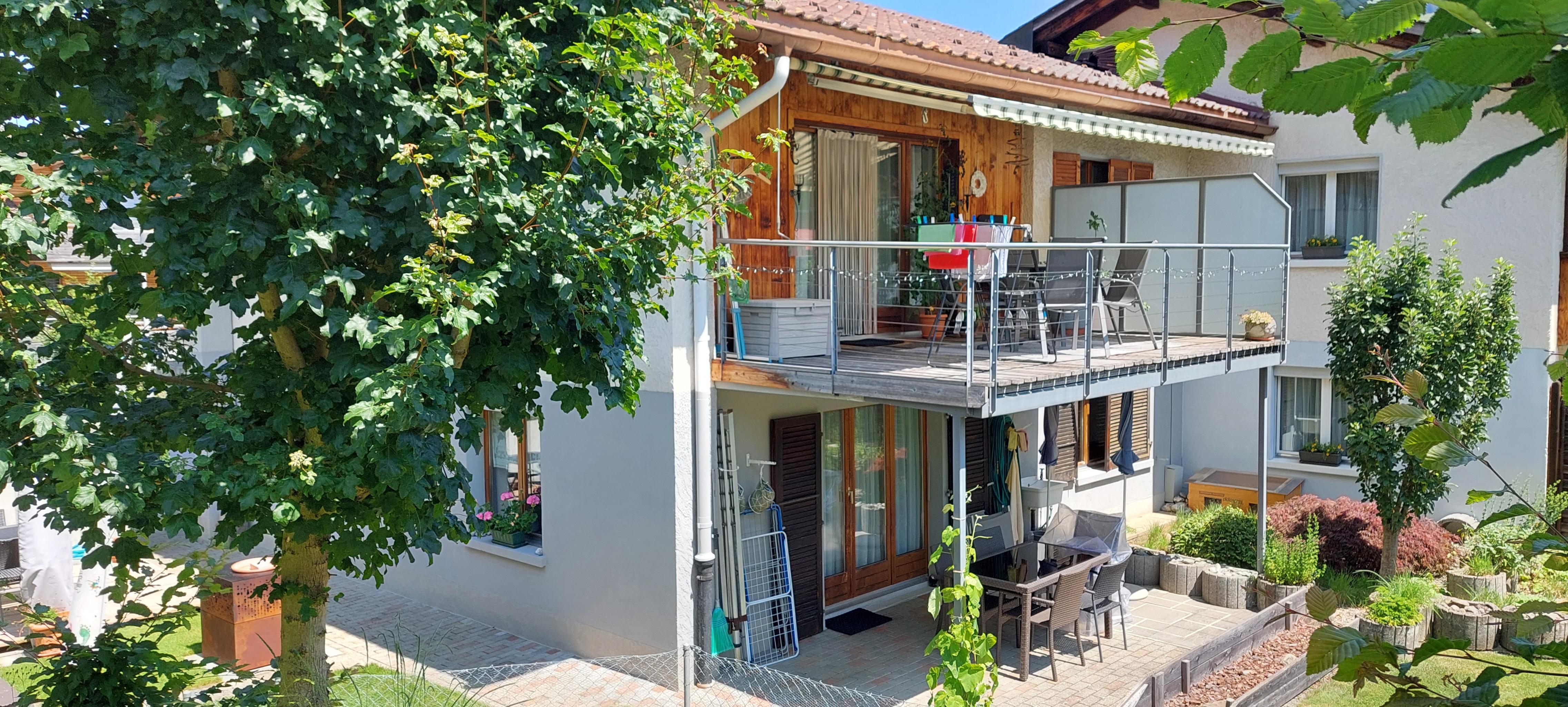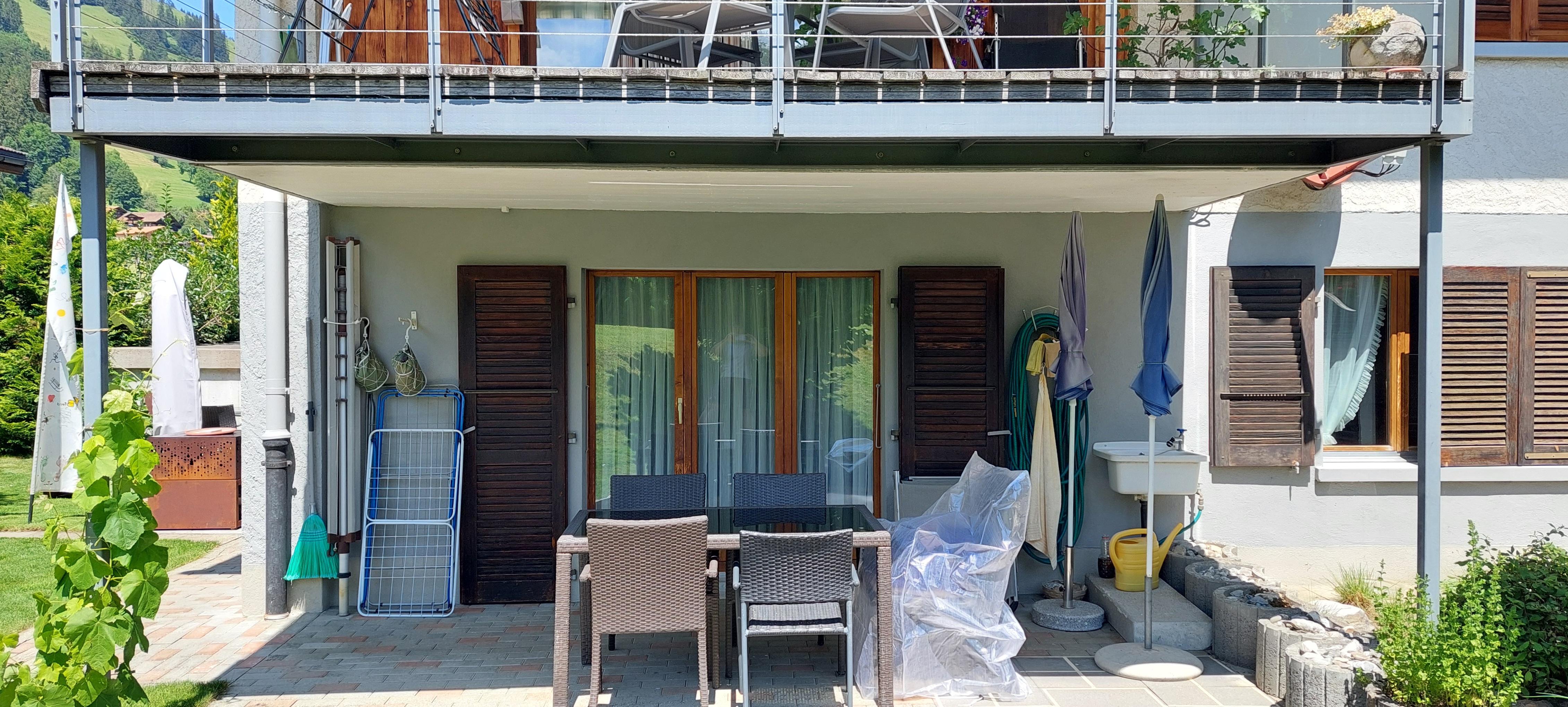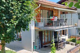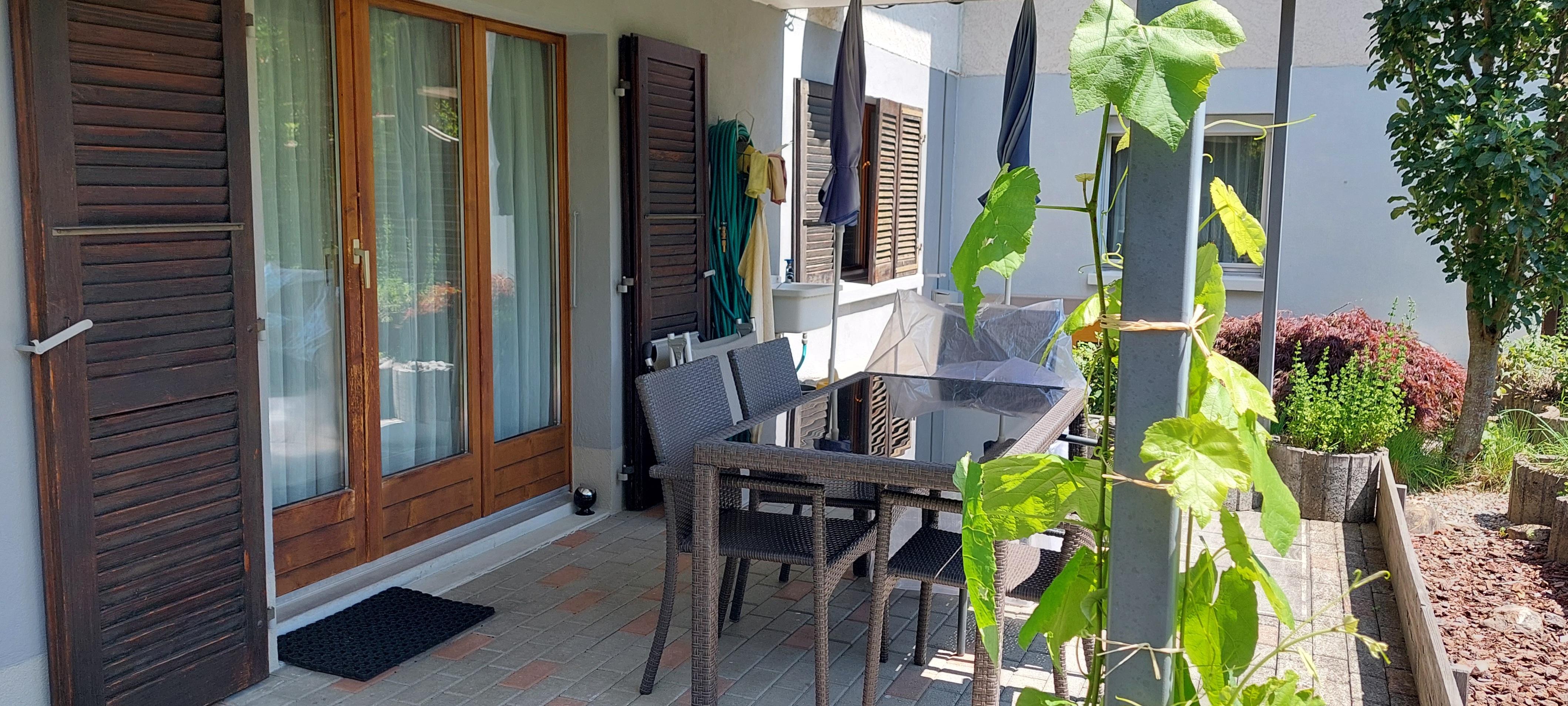 2-Zimmerwohnung (60m2) im Erdgeschoss eines Doppelhauses. Ruhige Lage, unweit von Geschäften und Bahnhof. 50m zur Bushaltestelle Sparenmoos. Parkplatz und grosser Gartensitzplatz.