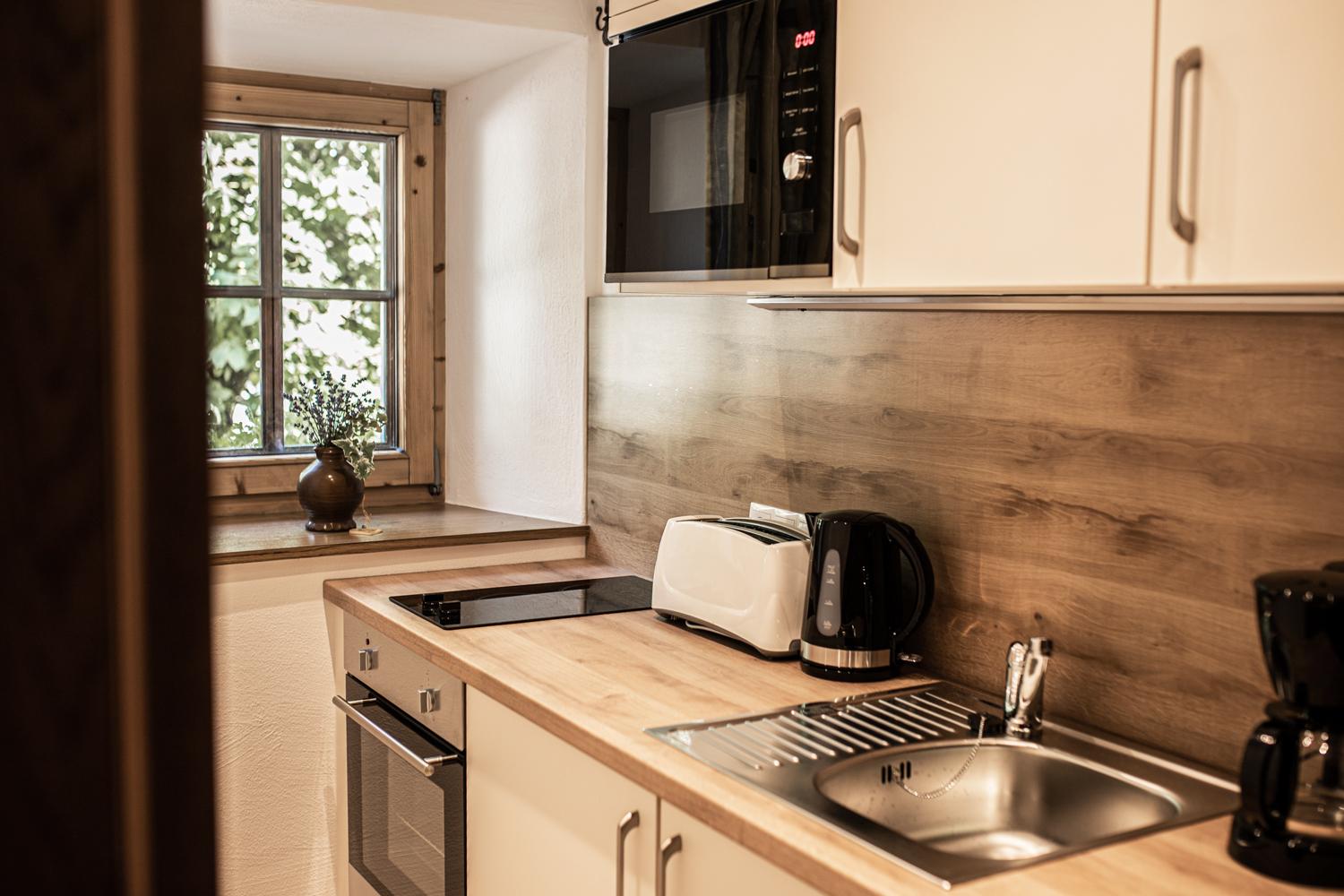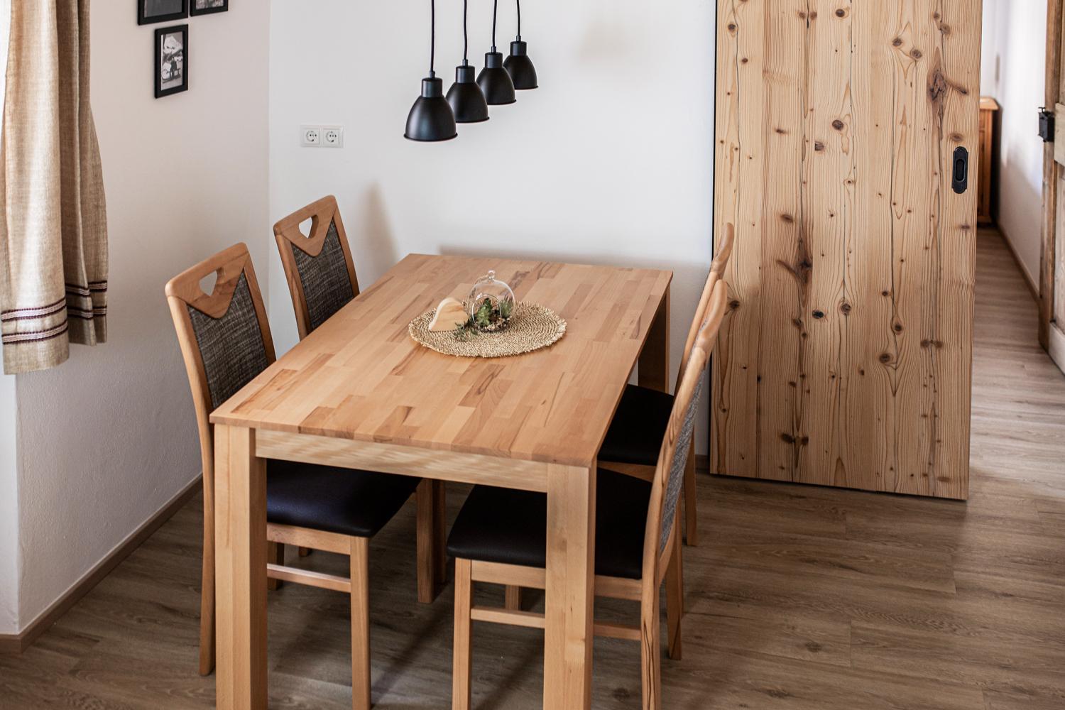 In der 2022 renovierten Ferienwohnung “Litzlalm” trifft moderne Einrichtung auf liebevoll erhaltene Originale aus früher Zeit.