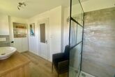 Ihr helles, großzügiges & freundliches Duschbad mit begehbarer Dusche 90x120cm, Spiegelschrank, Sitzgelegenheit, Handtuchheizkörper und Föhn ist mit Handtüchern/Badetücher ausgestattet.