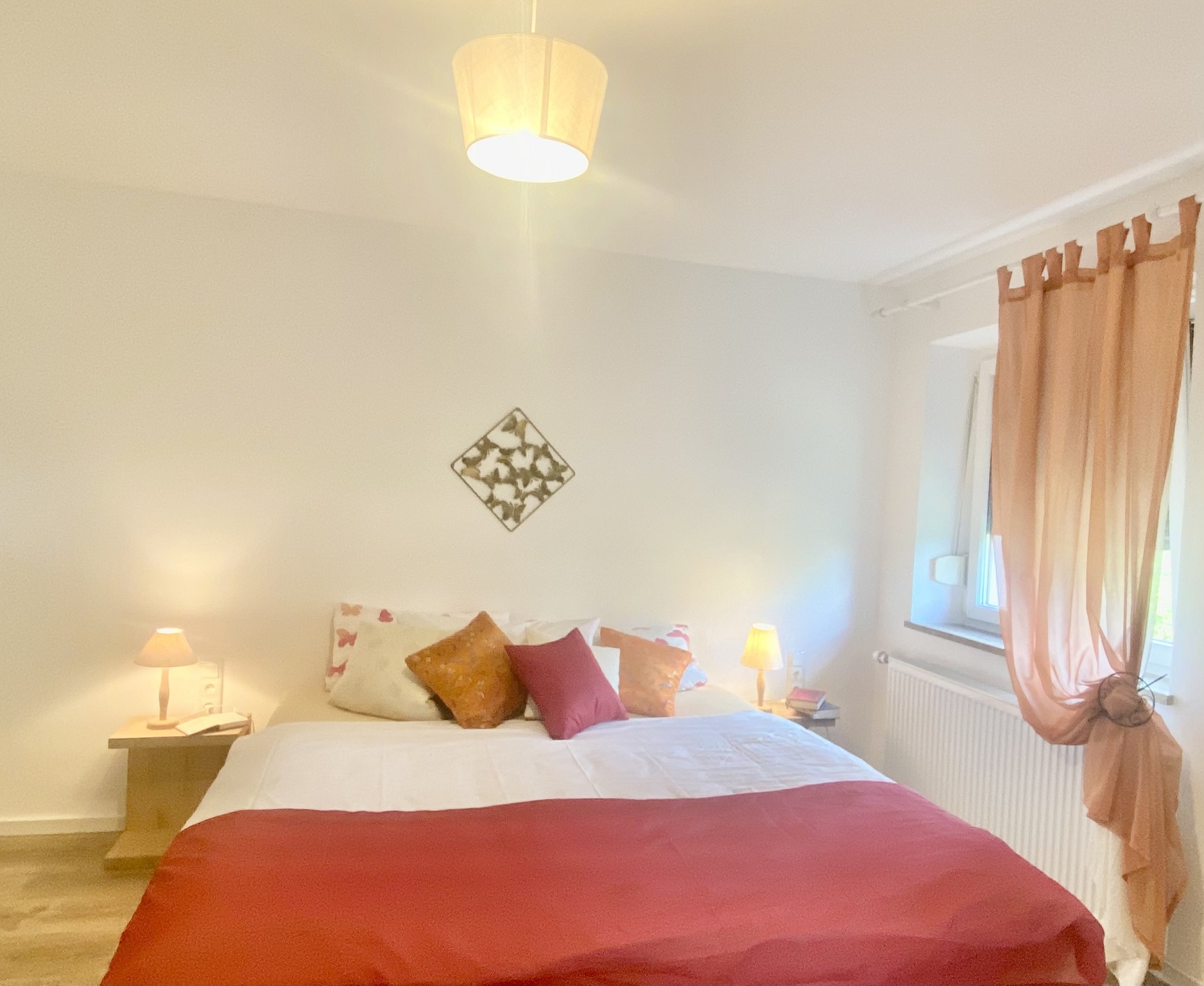 Es gibt 2 Doppelzimmer, wobei eins in ein Zweibettzimmer umgestaltet werden kann. Jeweils mit Kleiderschrank, ein Schreibtisch sowie Sitzgelegenheiten, evtl. sogar Platz für Ihre Yogamatte.