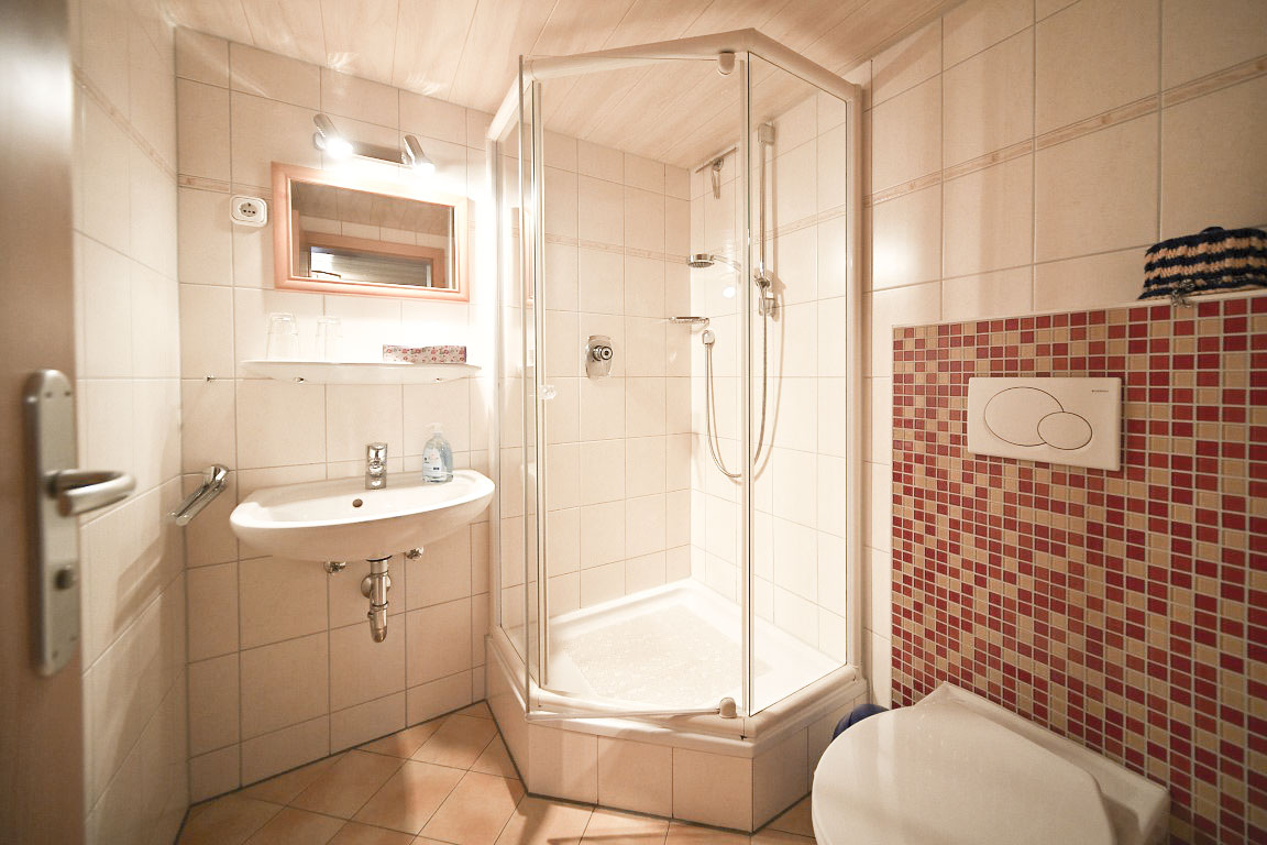 Unsere gemütlichen Zimmer mit Dusche / WC, die Ferienwohnung sowie die urige Bauernstube laden Sie zum Verweilen und Entspannen ein.