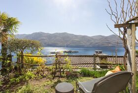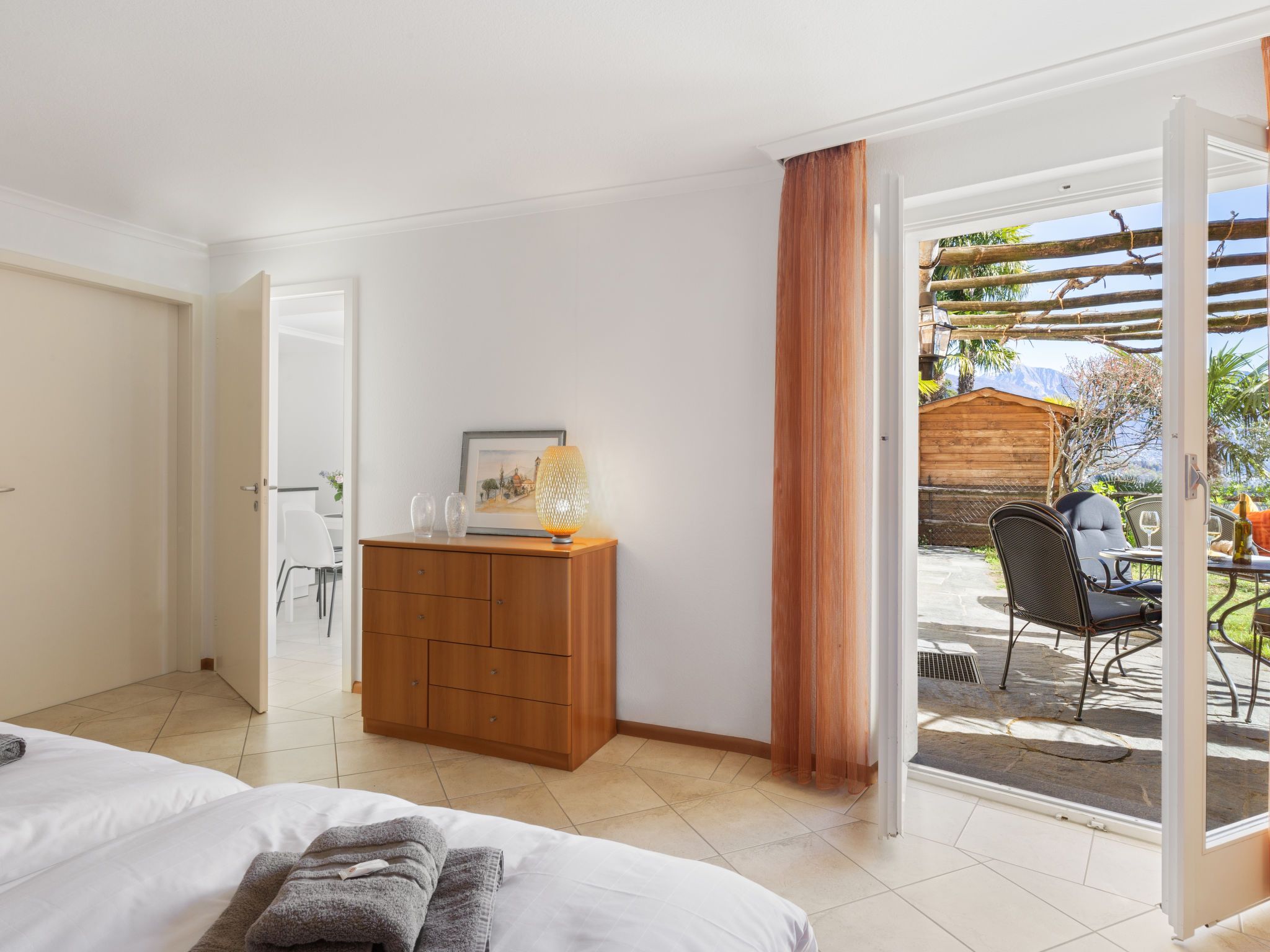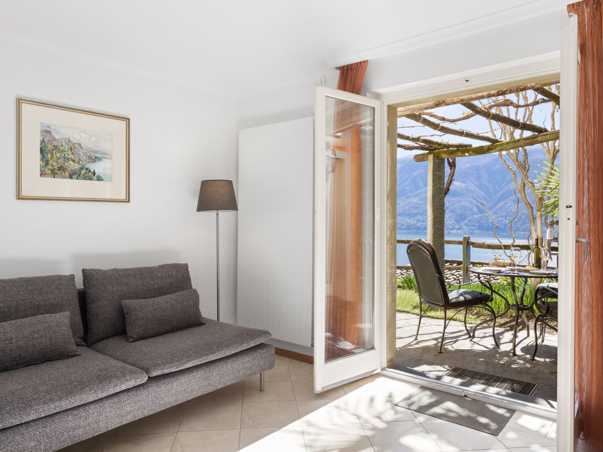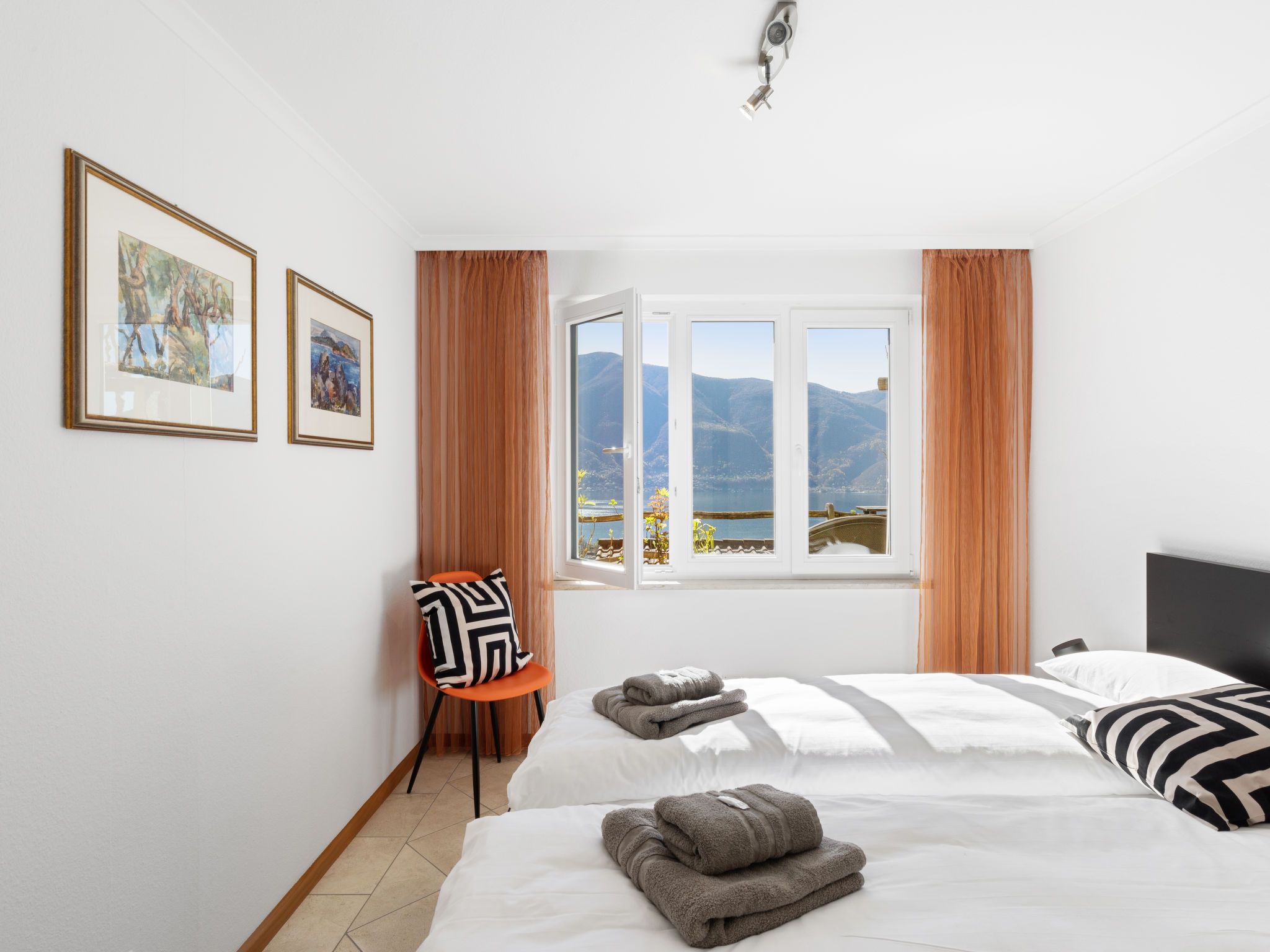Vista Isole di Brissago, 3-Zimmer-Wohnung 58 m2, im ebenerdigen Untergeschoss. Geräumig und hell, teilweise renoviert im Jahre 2023, komfortabel und gemütlich eingerichtet: Wohn-/Esszimmer mit Esstisch, Kabel-TV und Internationale TV-Sender (Flachbildschirm). Ausgang zum Garten, zum Gartensitzplatz. 1 Doppelzimmer mit 1 Doppelbett (2 x 100 cm, Länge 200 cm). Ausgang zum Garten. 1 Zimmer mit 1 Doppelbett (2 x 80 cm, Länge 200 cm). Offene Küche (Backofen, Geschirrspüler, 4 Glaskeramikplatten, Toaster, Wasserkocher, Tiefkühler, elektrische Kaffeemaschine, Kapseln für die Kaffeemaschine (Nespresso) extra, Racletteofen). Dusche/WC. Heizung. Gartensitzplatz teilweise überdacht. Terrassenmöbel, Liegestühle (2). Herrliche Panoramasicht auf den See, die Berge und die Landschaft. Zur Verfügung: Bügeleisen, Kinderhochstuhl, Babybett bis 2 Jahre (extra), Haartrockner. Internet (WLAN, gratis). Parkplatz Nr. 3. Bitte beachten: Nichtraucher-Unterkunft. Maximal 1 Haustier/Hund erlaubt. Eigener Eingang. NL-