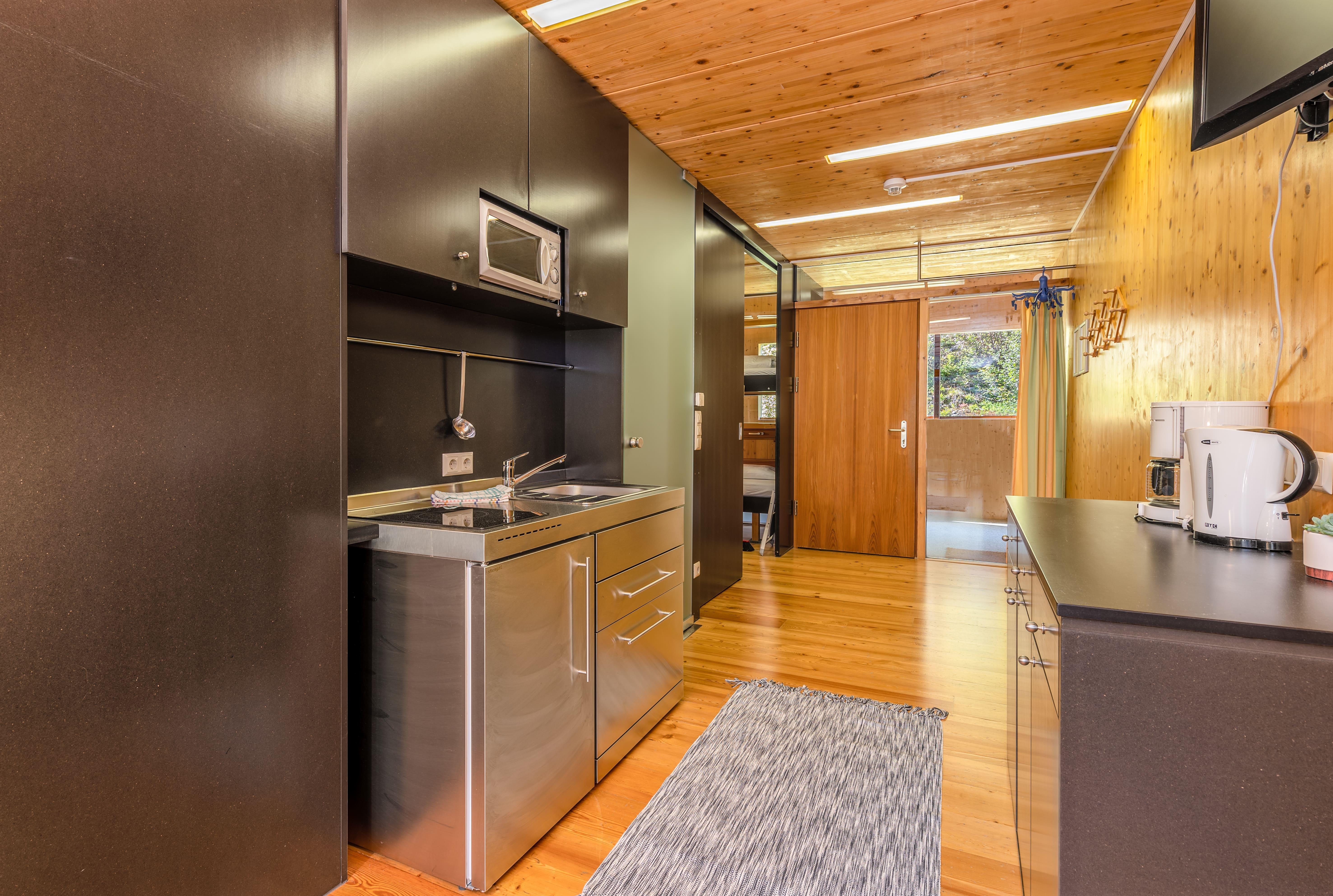 Ferienwohnung für max. 5 Personen. Ca. 41m². 2 getrennte Schlafzimmer, 1 Wohnraum, Dusche und WC (getrennt), komfortabel ausgestattete Küche mit Geschirrspüler und Mikrowelle.