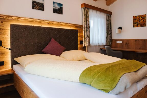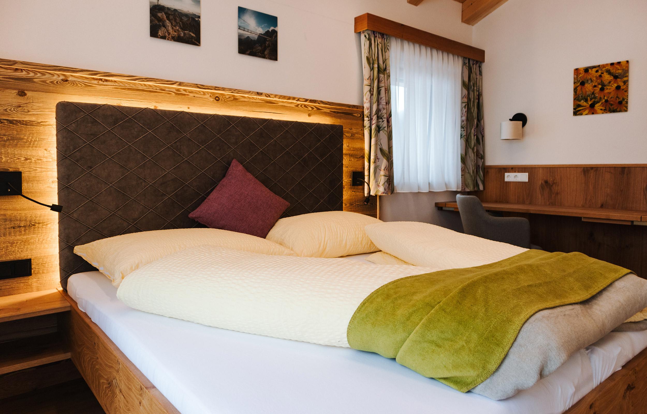 Am Bauernhof erwarten Sie Doppel- und Dreibettzimmer. Die Nichtraucherzimmer sind allesamt mit Dusche, WC, Sat-TV und gratis W-Lan sowie teilweise Balkon ausgestattet. Von den Zimmern erwartet Sie ein atemberaubender Blick auf die heimische Bergwelt oder in unseren liebevoll gepflegten Garten. Als besonderes Service steht pro Zimmer ein überdachter Carport-Parkplatz zur Verfügung. Am Morgen erwartet Sie ein herzhaftes und ausgiebiges Frühstück vom Buffet, durch das Sie gut gestärkt in Ihren Urlaubstag starten.