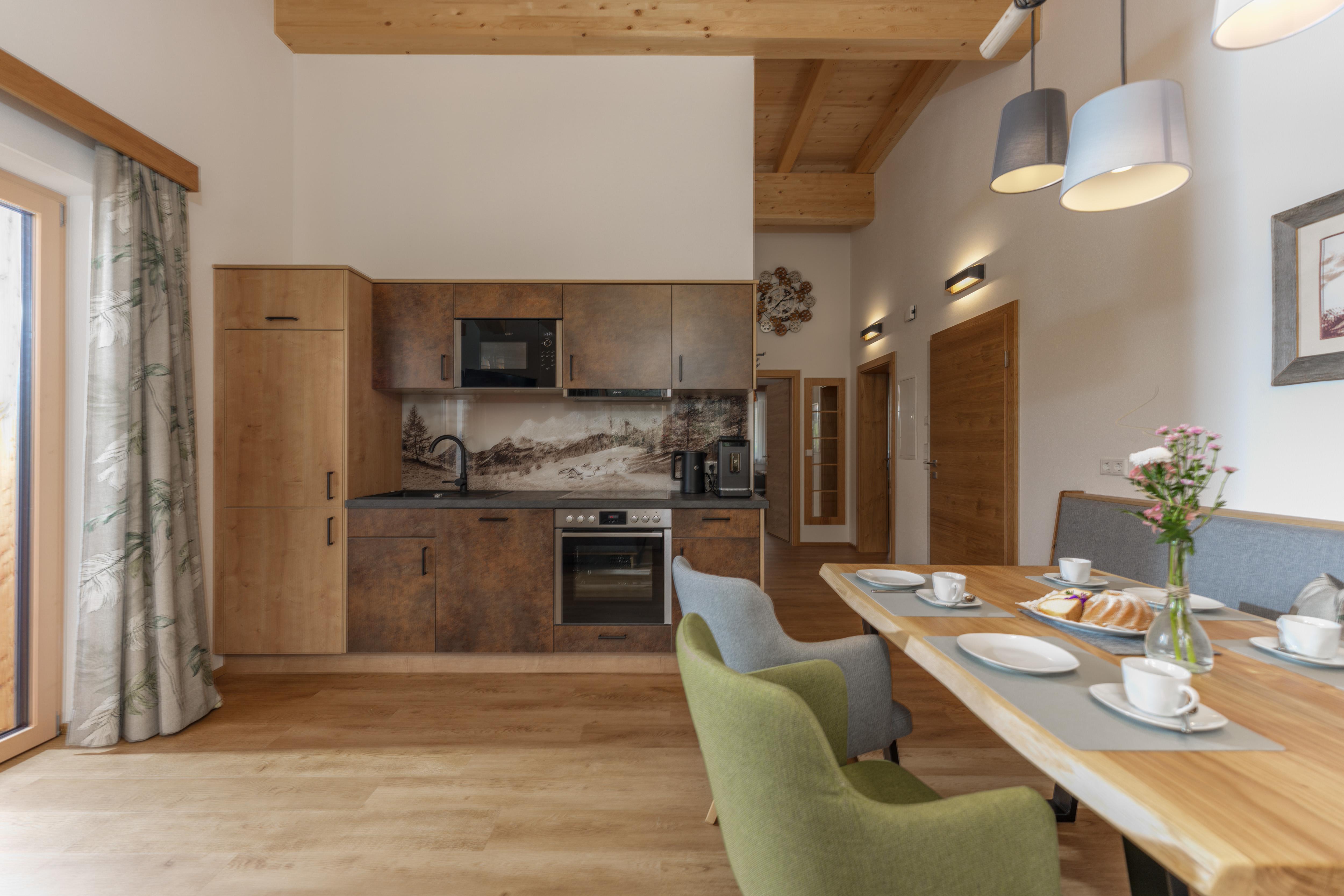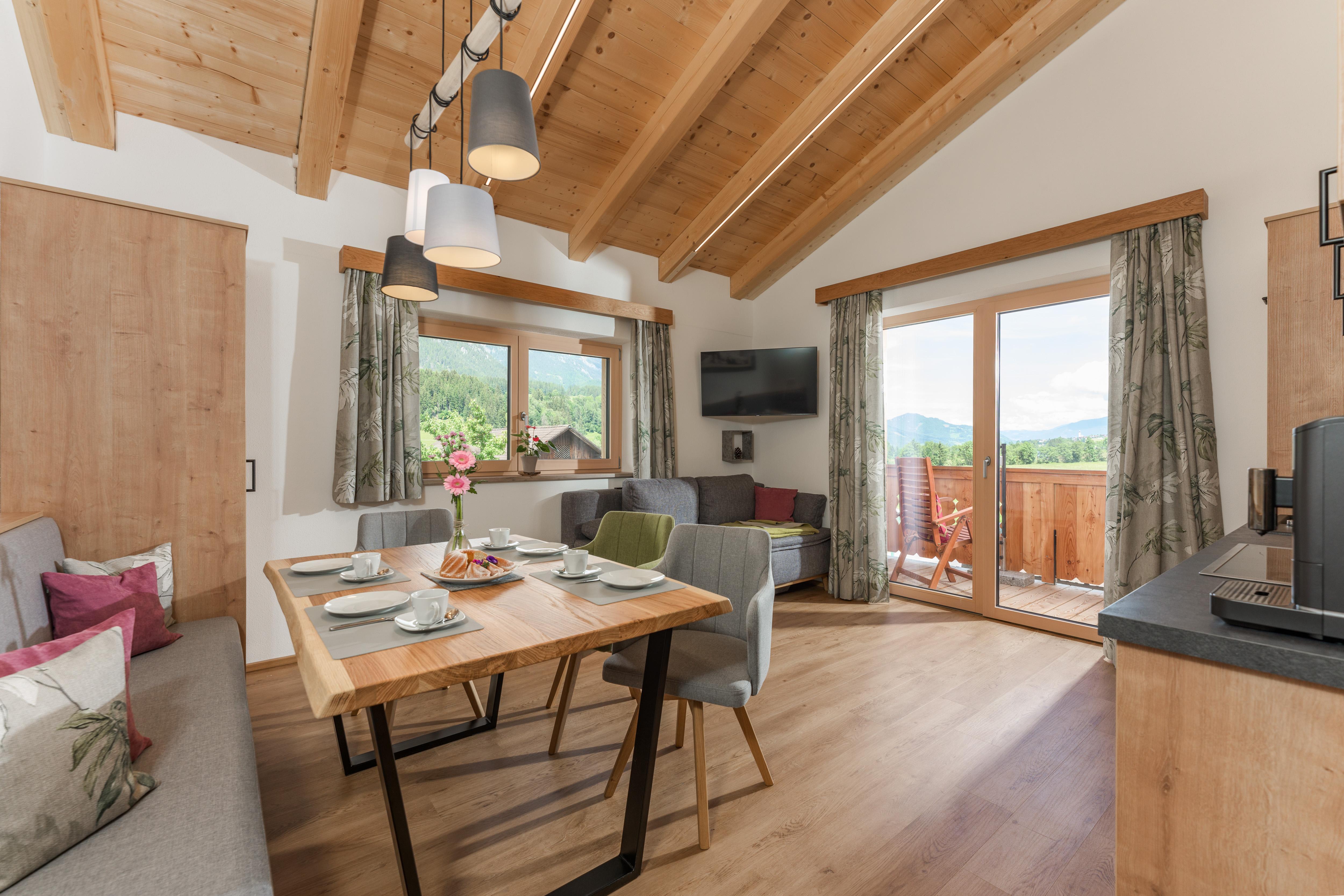 Die neu errichteten Appartements im neuen ländlichen Stil bieten eine umfassende Ausstattung für einen erholsamen Urlaub hier im Ennstal. Die zwei Appartements im Obergeschoß sind mit einem großen Balkon ostseitig und einer Terrasse westseitig ausgestattet. Es erwartet Sie eine fantastische Kulisse unserer Bergwelt.