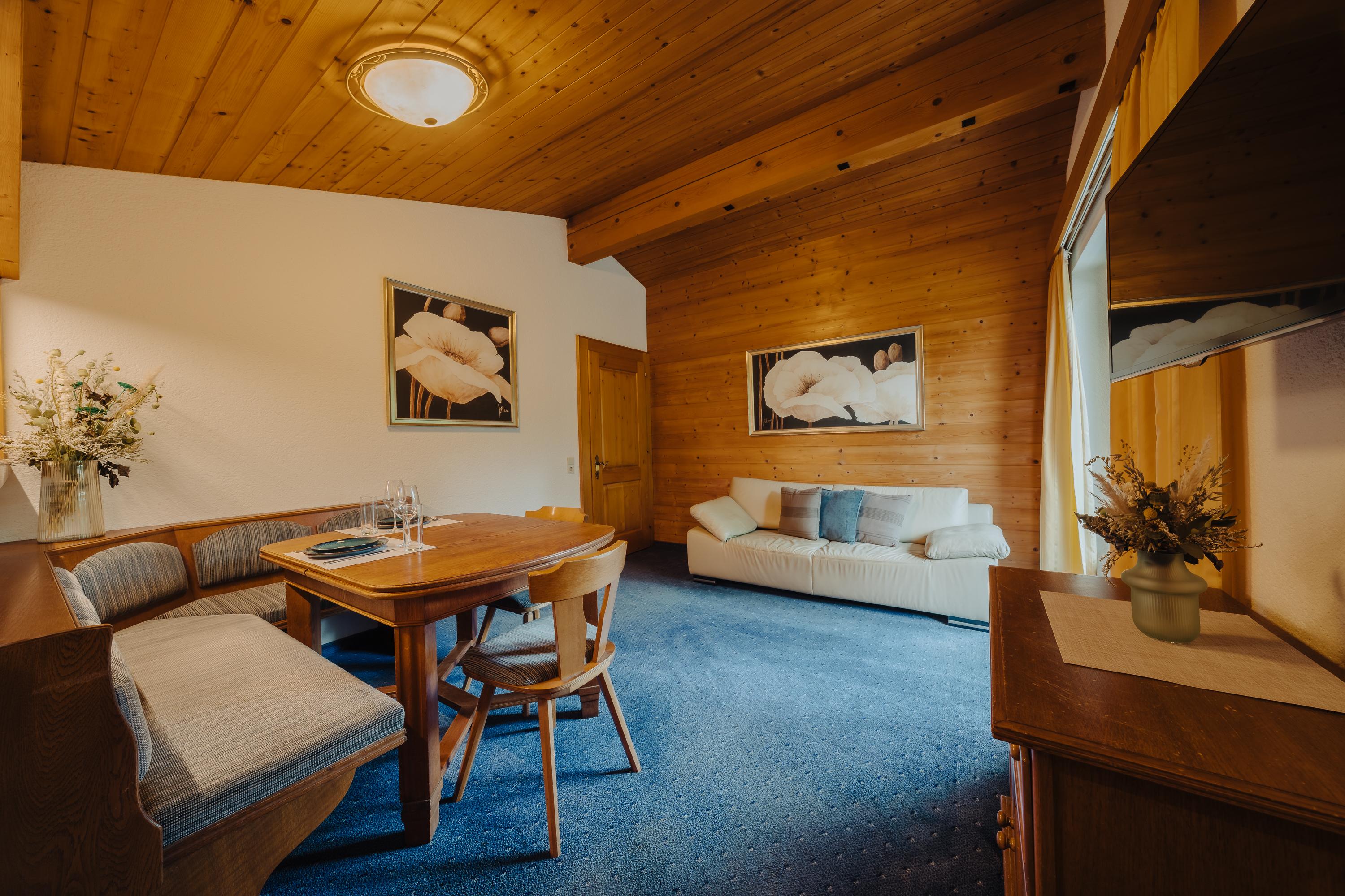 Das Appartement Zimba ist im obersten Stockwerk unseres Hauses und bietet mit seinen 87m² Platz für 2-6 Personen. Es verfügt über drei Schlafzimmer sowie zwei Separate Badezimmer mit Dusche und WC. Einem gemütlichen Wohn/Essbereich verbunden mit einer kleinen voll ausgestatteten Küche.