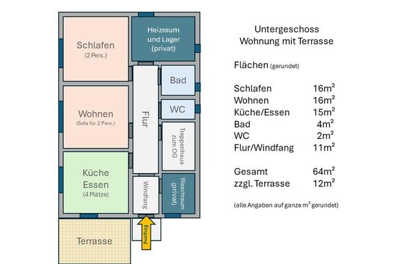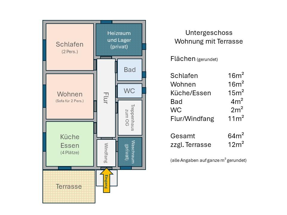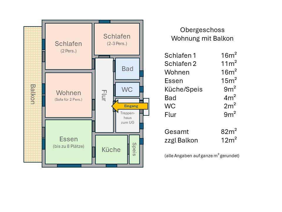 Die maximale Belegung für diese Wohnung beträgt 4 Personen plus bei Bedarf einem Kleinkind.