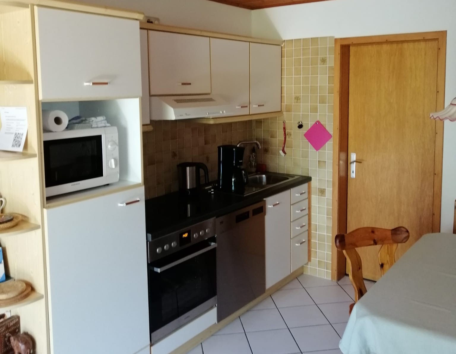Die Ferienwohnung im Landhausstil liegt im Souterrain mit eigenem Eingang und einer gemütlichen Südterrasse. Sie ist ausgestattet mit einer Wohnküche mit Spülmaschine, Diele, einem Schlafzimmer sowie einem neu renoviertem Bad mit Dusche/WC.