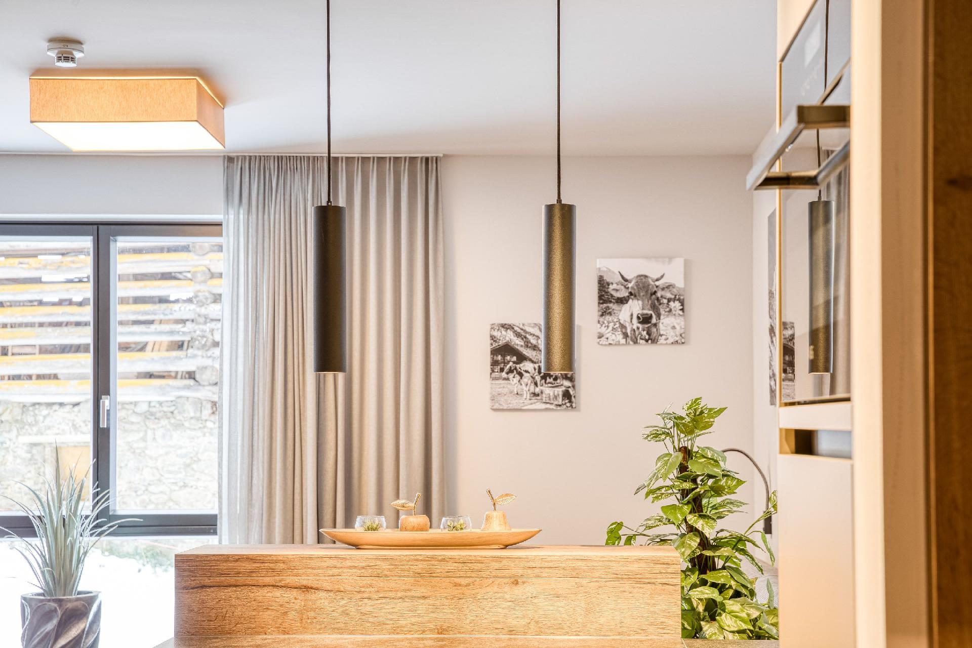 Der Außenbereich mit seiner Nähe zum See in nur 392m Entfernung und der Berg-/Seilbahn in 975m bietet zahlreiche Möglichkeiten für Outdoor-Aktivitäten. Ob Sie den Tag mit einer Wanderung beginnen oder die Skischule in 1000m Entfernung für erste Schwünge im Schnee nutzen – die Lage unserer Ferienwohnung macht es möglich.