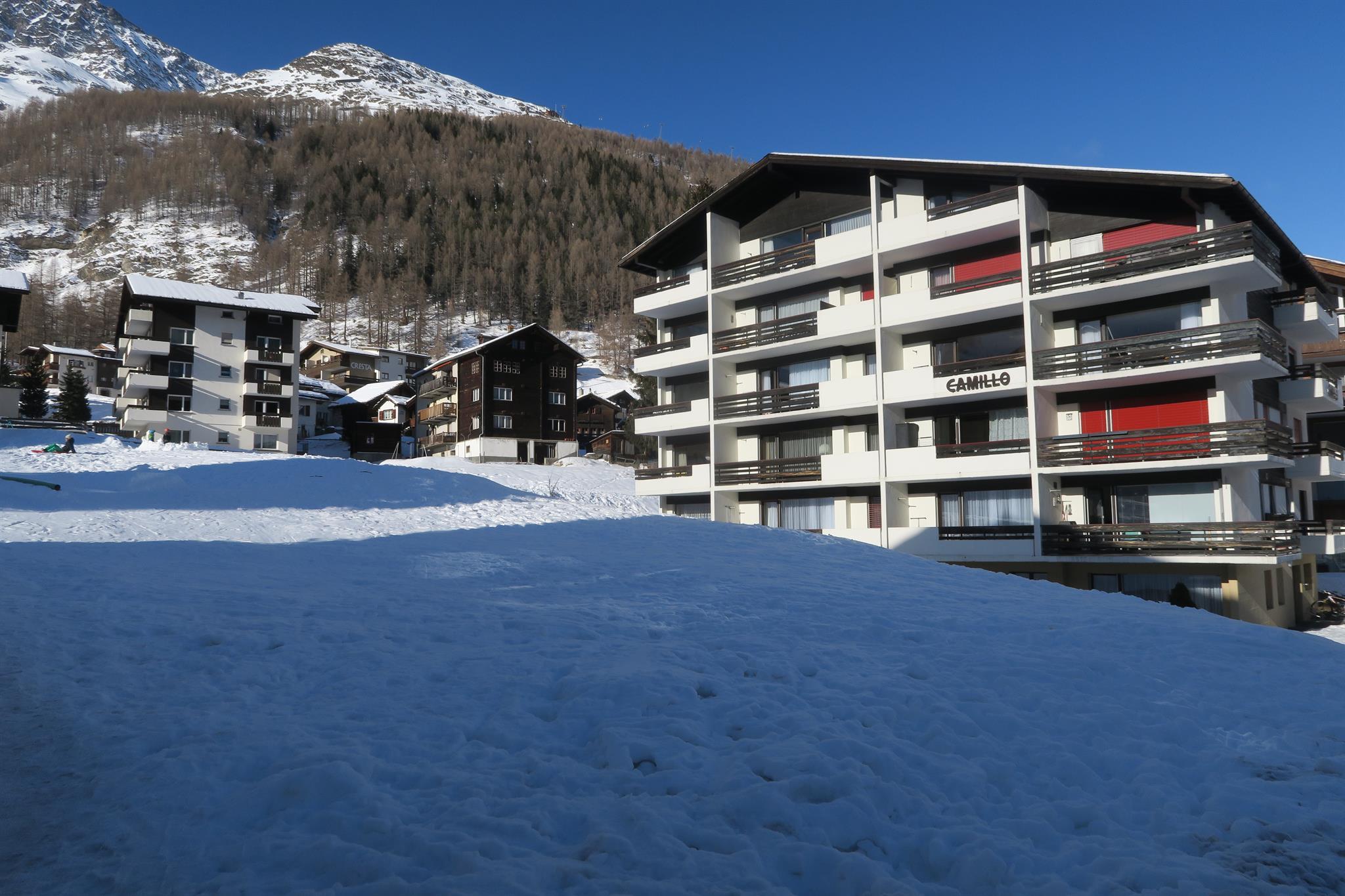 Das Haus Camillo befindet sich in der Nähe der Skianlagen. Das Haus ist ruhig gelegen und nur wenige Schritte vom Dorfzentrum entfernt. Im Haus befinden sich ein Wasch- und ein Skiraum (neu renoviert, mit heizbarem Skischuhständer), ausserdem ein Fahrstuhl.