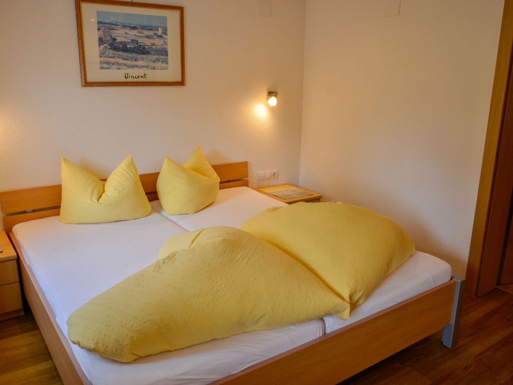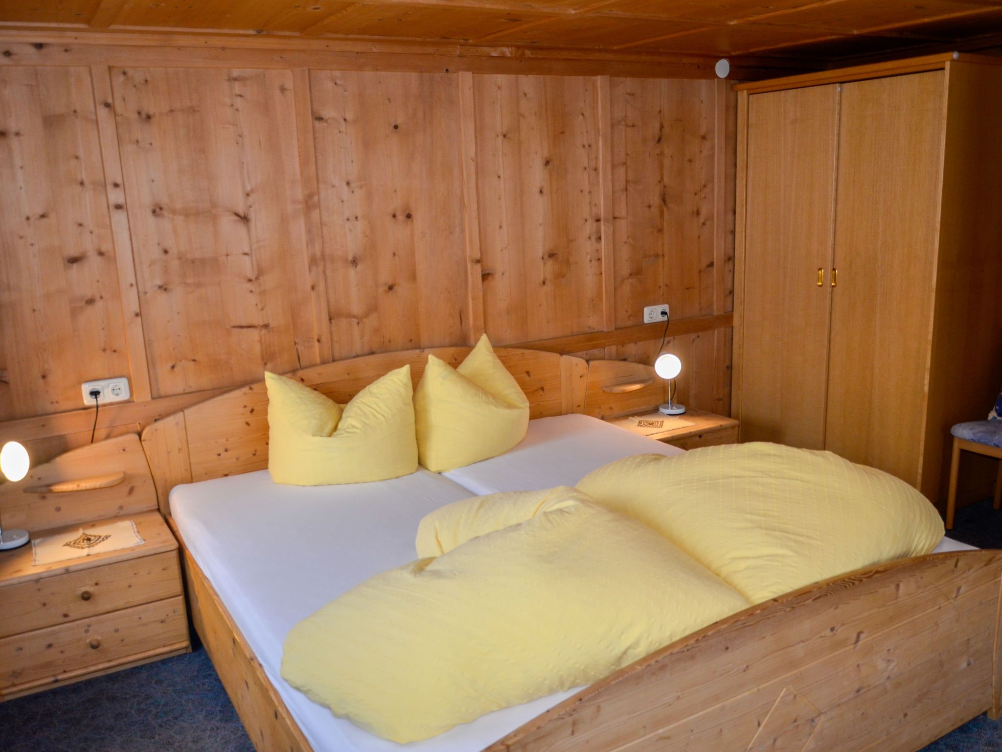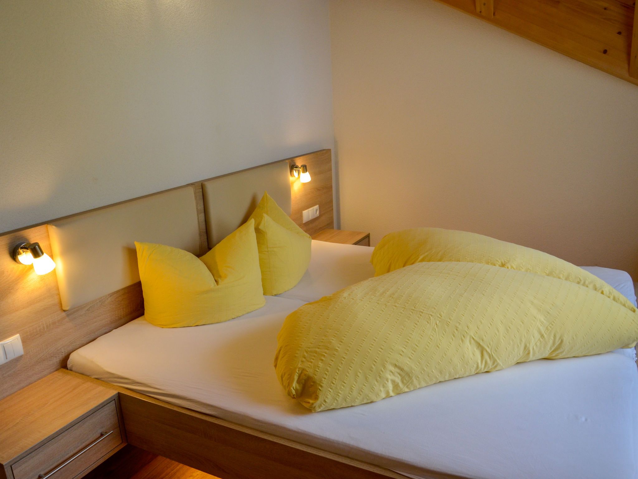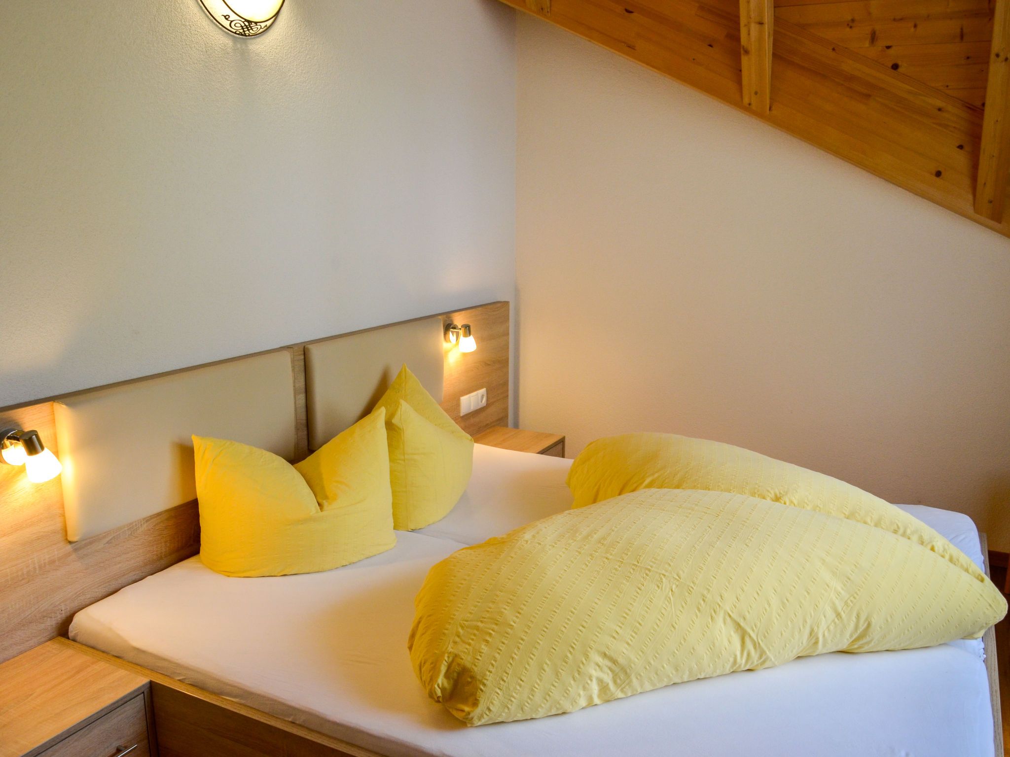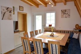 Bergblick, 6-Zimmer-Haus 160 m2 auf 2 Stockwerken. Gemütlich und mit viel Holz eingerichtet: Obergeschoss: 1 Zimmer mit 1 Doppelbett, Waschbecken und Sat-TV. 1 Zimmer mit 1 Bett (90 cm, Länge 200 cm), 1 Doppelbett und Waschbecken. 1 Doppelzimmer mit 1 Bett (90 cm, Länge 200 cm), 1 Doppelbett. Dusche/WC. 2. Obergeschoss: 2 Doppelzimmer, jedes Zimmer mit Dusche/WC. 1 Zimmer mit 1 franz. Bett (140 cm, Länge 200 cm). Grosse Wohnküche (Backofen, Geschirrspüler, 4 Glaskeramikplatten, Toaster, Wasserkocher, Tiefkühler, elektrische Kaffeemaschine) mit Esstisch, Sat-TV und Radio. Dusche/WC. Teppichboden. Grosse Terrasse 60 m2. Terrassenmöbel. Schöne Panoramasicht auf die Berge und das Tal. Zur Verfügung: Kinderhochstuhl, Babybett, Haartrockner. Internet (Wireless LAN, gratis). Parkplatz (überdacht, 4 Autos) in 100 m. Bitte beachten: Nichtraucher-Unterkunft. Eigener Eingang, Rauchmelder, Feuerlöscher.